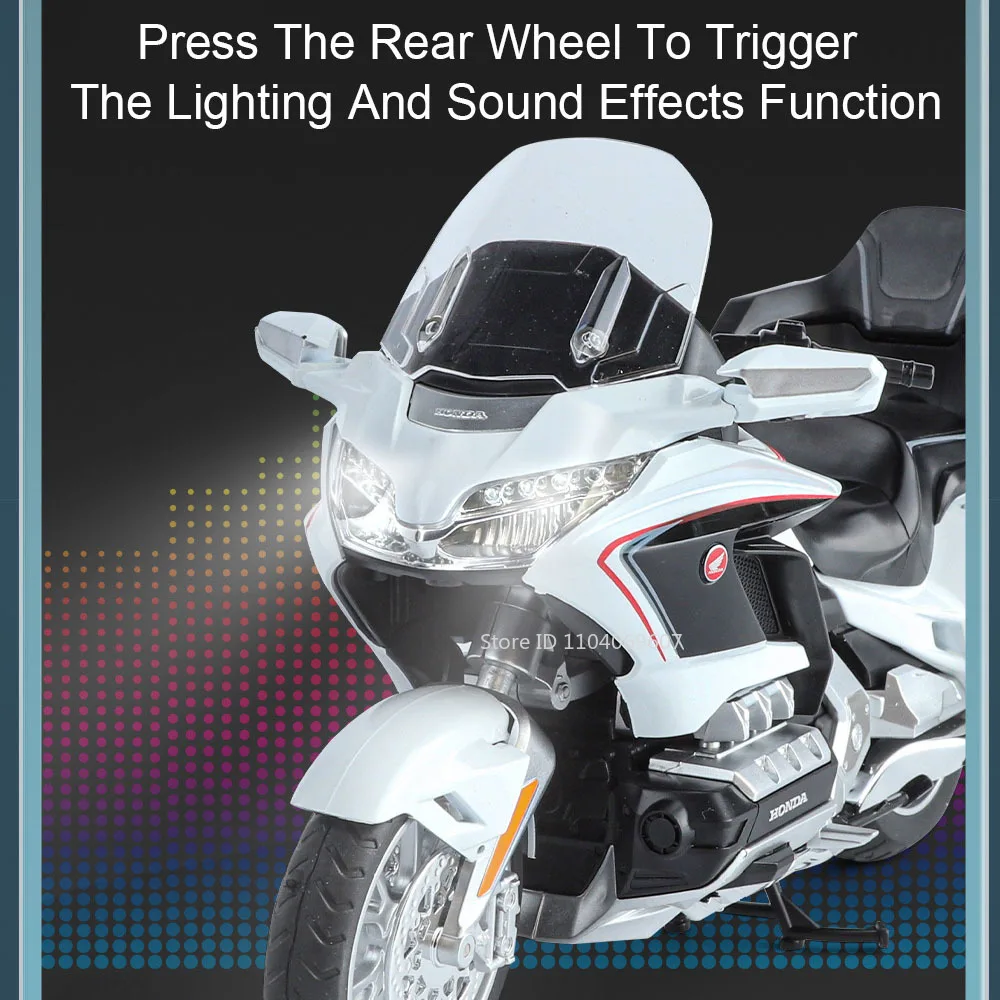 Step into the world of detailed motorcycle modeling with this exceptional Honda Gold Wing GL800 toy. Whether you're a collector, enthusiast, or searching for a unique gift, this model promises high-quality craftsmanship and realistic features. Its authentic design, combined with dynamic functions like sound, lighting, and steering, makes it an engaging display piece or a fun collectible to cherish. Imagine showcasing this vibrant, detailed motorcycle in your space, appreciating its craftsmanship and features—it's more than a toy; it’s a celebration of motorcycle mastery. Upgrade your collection today and experience the thrill of owning such a sophisticated model.