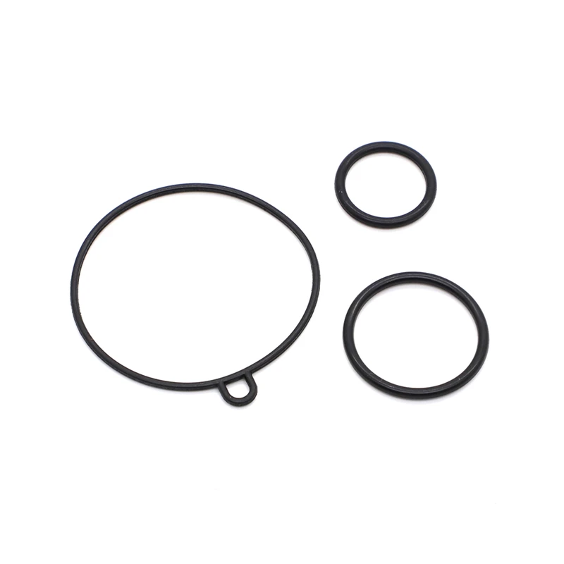 - This set includes three black, flexible plastic gaskets measuring 55mm, 32mm, and 23mm to fit various Honda, Kawasaki, and Suzuki models, ensuring a perfect fit every time.
