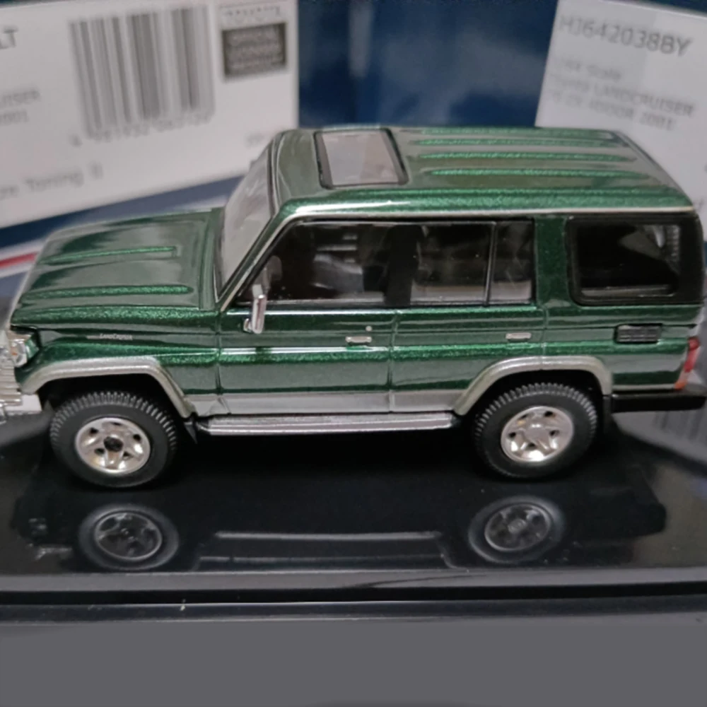 This 1:64 scale diecast model of the Honda Land Cruiser LC70 70ZX 2001 features a sleek metallic green finish with sharp, realistic details. Crafted from alloy, plastic, and rubber, it showcases a fully enclosed body with movable wheels, ideal for collectors and hobbyists. The model includes a silver front grille with horizontal slats, round headlamps with clear coverings, silver side mirrors, and transparent windows revealing a simplified interior. Available in four variants—Spot Goods A, B, C, and D—it is perfect for display, gifts, or static ornamentation. Please note, this is a non-functional collectible without remote control, sound, or light features.
