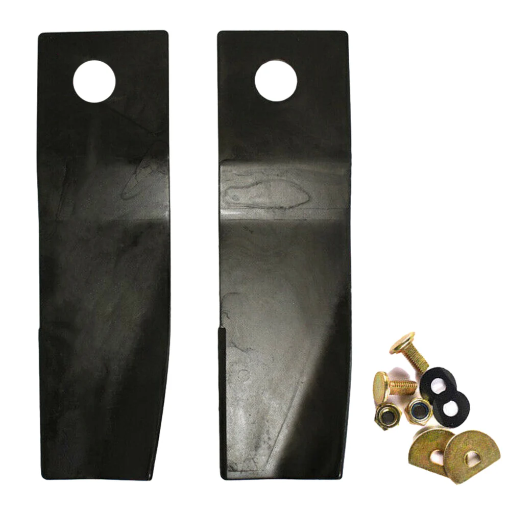 Upgrade your lawnmower with this durable bolt and blade kit, available in two sizes: 19-inch blades measuring 123mm from center of mounting hole to tip with a 45mm width, suitable for models HRU19R, HRU19D, 194, 195, 196, and 197; or 21-inch blades measuring 150mm with a 50mm width, compatible with models HRU217DPU, HRU217D, HRU216SU, HRU216K, HRU216K1, HRU216M, and HRU216M1. Each set includes two black metal blades with offset bolt holes for easy installation, along with two nuts, bolts, tension washers, and D washers. Crafted for strength and reliability, this kit ensures secure attachment and optimal mowing performance.