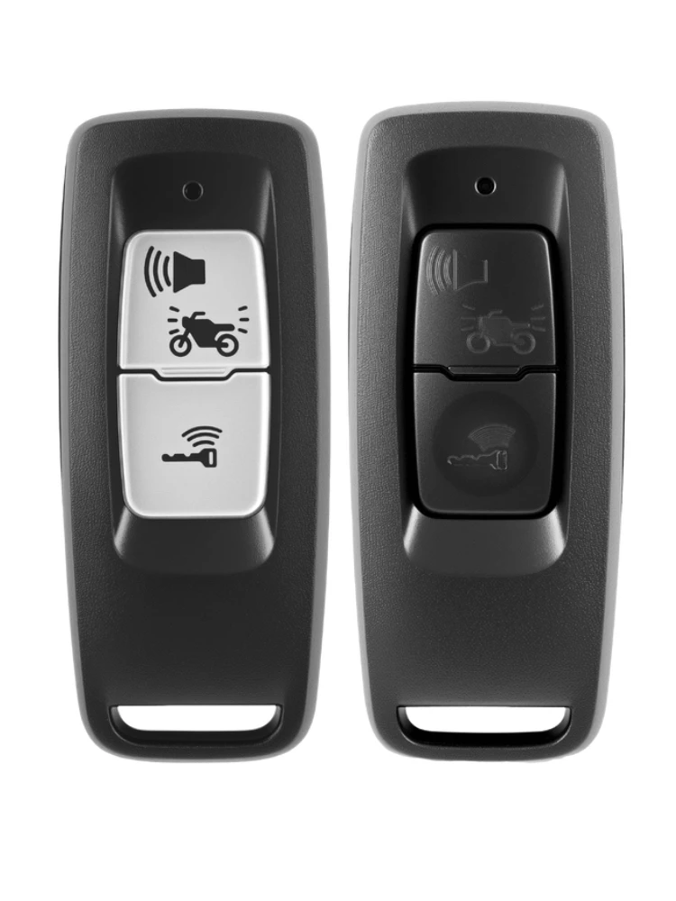 Experience the perfect blend of modern design and reliable function with this Honda motorcycle remote control key, compatible with models like PCX160, FORZA, and NSS350 from 2021 to 2023. Crafted with a durable plastic casing available in black or silver, it features a smooth, curved rectangular shape for comfortable handling. The white version offers a matte finish with clean simplicity, while the black version has a subtle gloss, adding a refined touch. The embedded ID47 chip ensures high security, operating at 434 MHz frequency. Each key includes tactile, embossed icons for remote start and lock functions, with small grip indentations for ease of use. This remote is your ultimate upgrade for convenience and style.