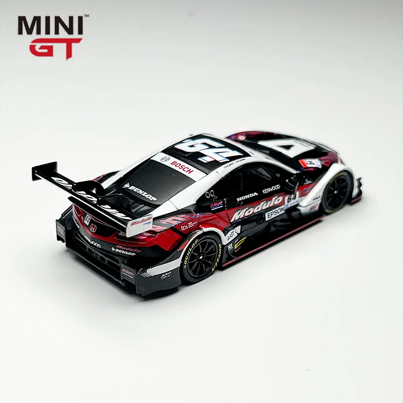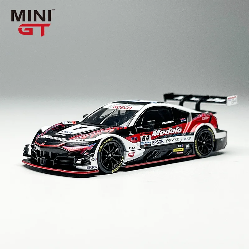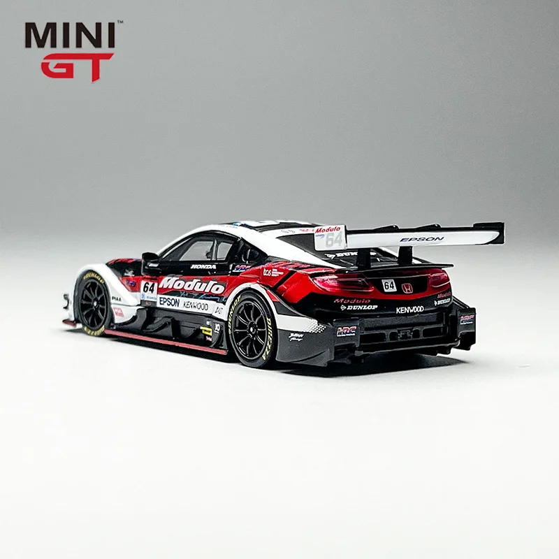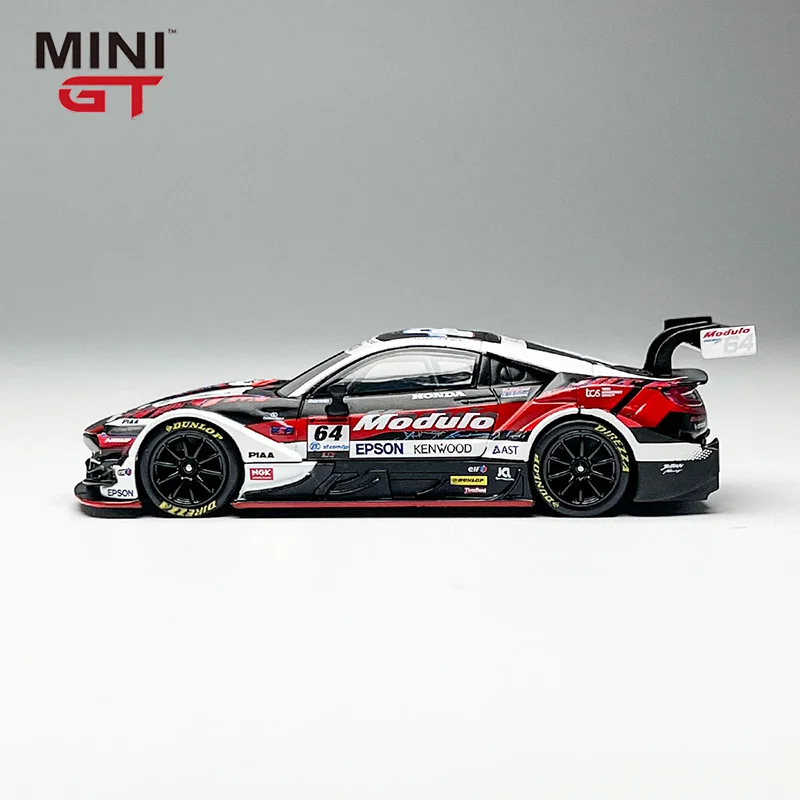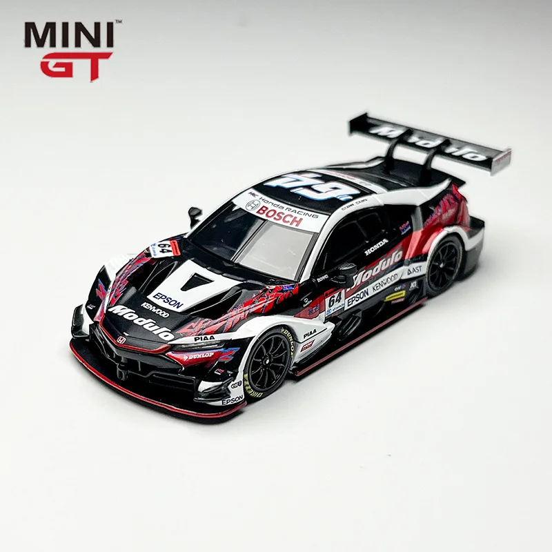 This meticulously crafted 1:64 scale die-cast model of the Honda NSX Gt500 features an alloy construction with a sleek aerodynamic body in a striking black and white color scheme accented by bold red sponsor decals. The detailed replica showcases realistic contours, precisely molded lines, and a prominent rear wing spoiler that captures the sporty and aggressive stance of the original racing car. Equipped with black wheels and intricate rims, it emphasizes craftsmanship and authenticity, making it an ideal collectible for enthusiasts. Suitable for ages 14 and older, this non-electronic model bears CE certification and offers a striking display piece with its high-quality metallic finish and race-inspired design.