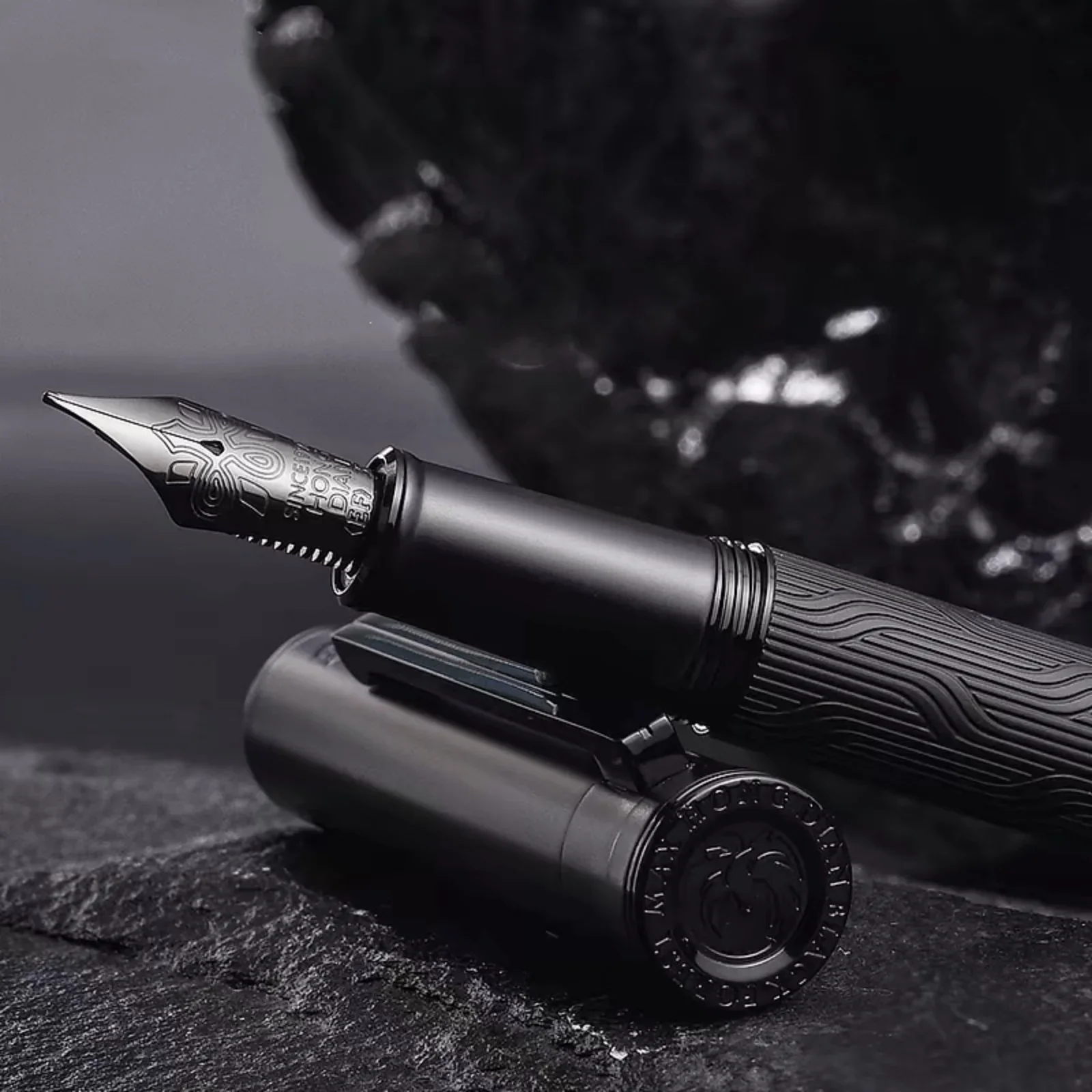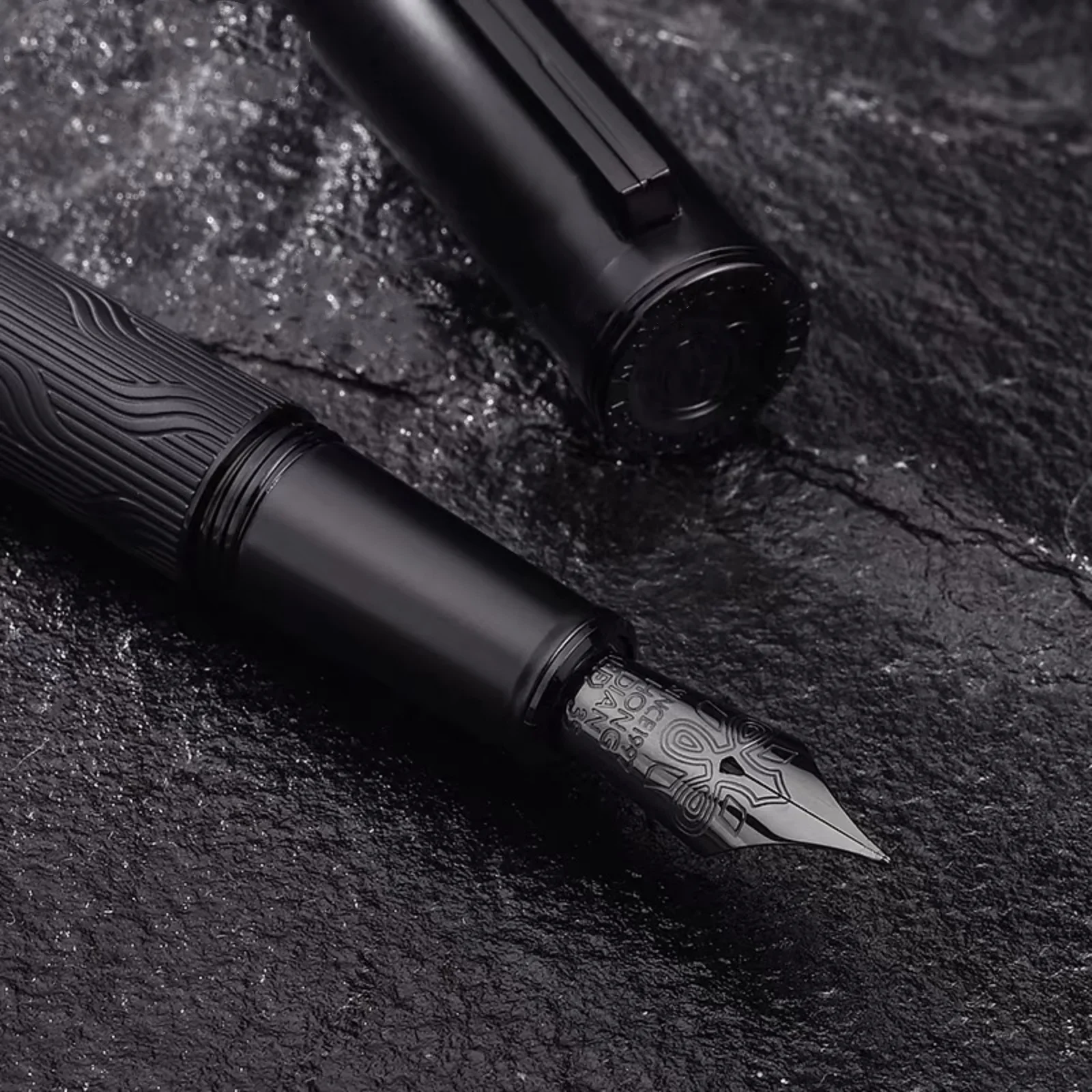 - Polished, shiny cap with a minimalist clip, providing secure attachment and contrasting beautifully with the textured body for refined aesthetics.