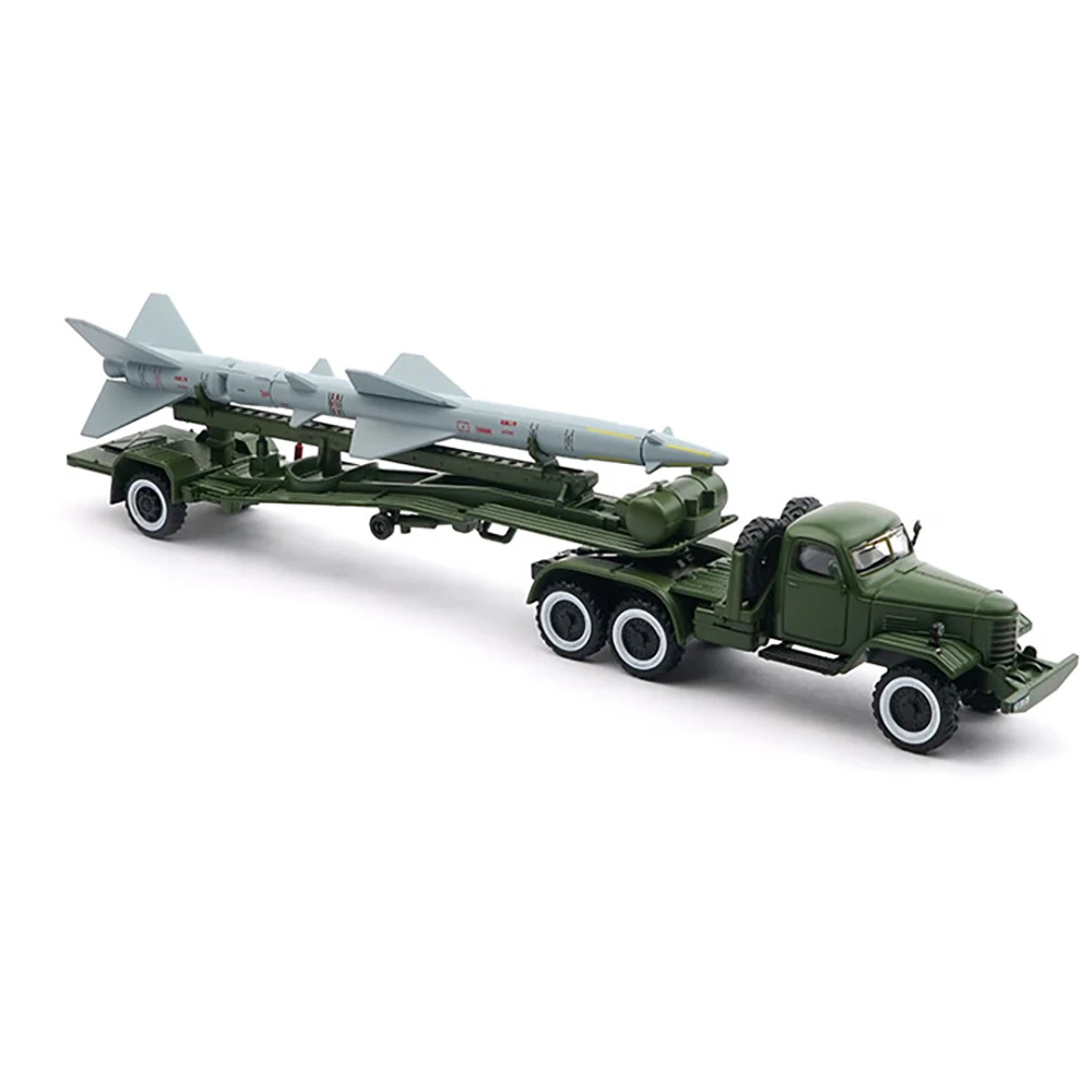 - Authentic military vehicle design featuring a vintage-inspired cab, detailed flatbed, and a finely crafted missile with surface markings.