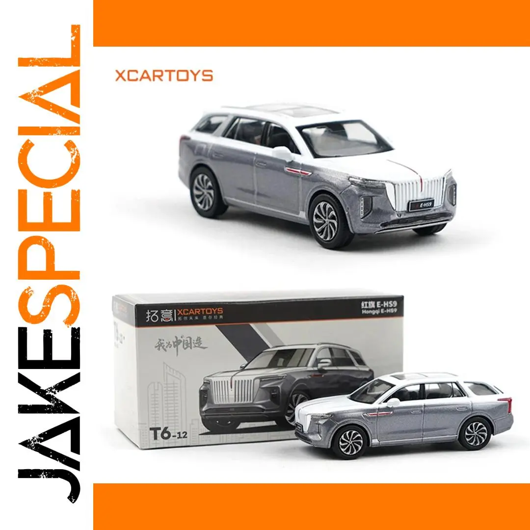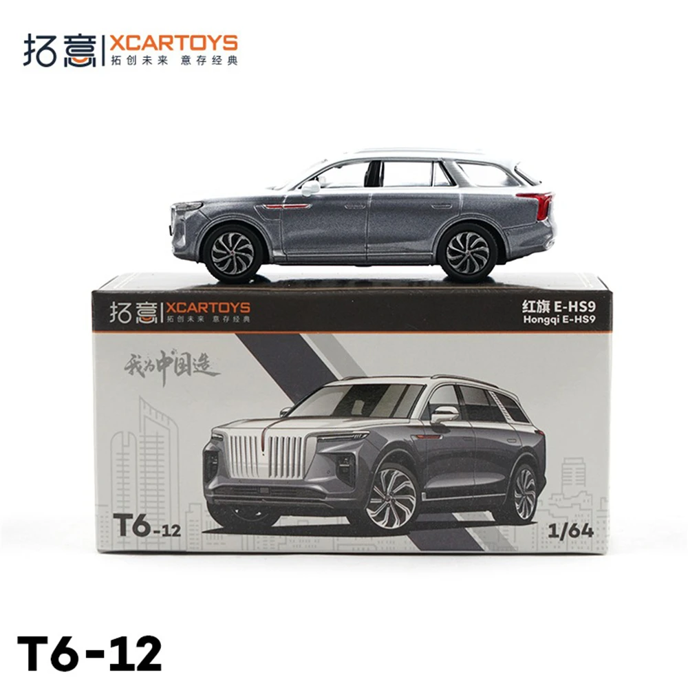 - The packaging features a box with detailed illustrations of the Hongqi E-HS9, emphasizing the model's collectible value and making it an excellent gift for car enthusiasts.
