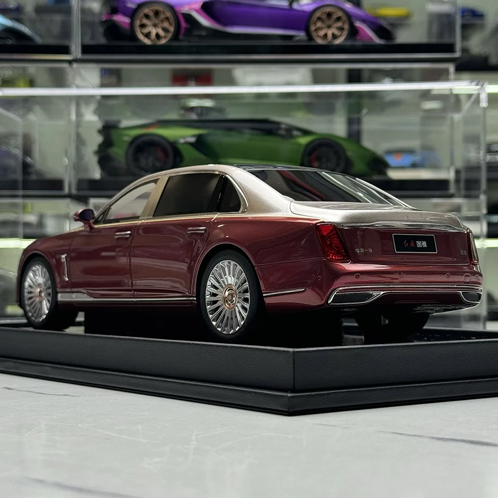 Enhance your collection with this limited edition 1:18 scale resin model of the Hongqi Guoya Sedan, featuring a luxurious deep red metallic finish. Crafted with meticulous detail, the model showcases a black slatted grille with silver accents, intricate headlights, smoothly contoured hood, and aerodynamic mirrors, embodying authentic design elements. Perfect as a decorative piece or gift, this static display emphasizes craftsmanship and elegance. Measuring approximately proportionate to the real vehicle, it is ideal for enthusiasts aged 14 and above who appreciate high-quality miniatures. Please note minor flaws may exist due to manufacturing processes, adding to its unique charm for display and appreciation.