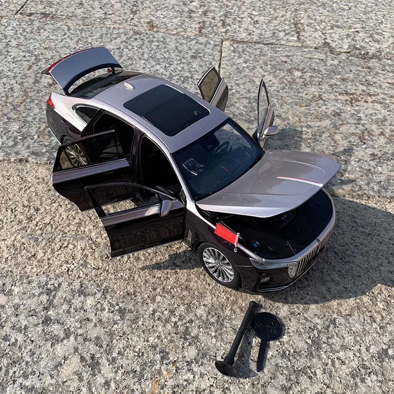 Experience the allure and craftsmanship of this stunning Hongqi H5 diecast model, meticulously designed to capture the luxury and sophistication of the real vehicle. Measuring approximately 28 cm long, 12 cm wide, and 8 cm high, and weighing around 1.2 kg, this model combines alloy, ABS, and rubber materials to create a highly detailed replica. The sleek exterior features a glossy, metallic rose gold finish that exudes elegance, complemented by intricate design elements like a bold vertical chrome grille, slim LED headlights, and polished multi-spoke alloy wheels. The carefully crafted interior includes functioning doors, a movable seat, and a linked steering wheel. Perfect for collectors and enthusiasts, this model offers realistic details and a premium aesthetic.