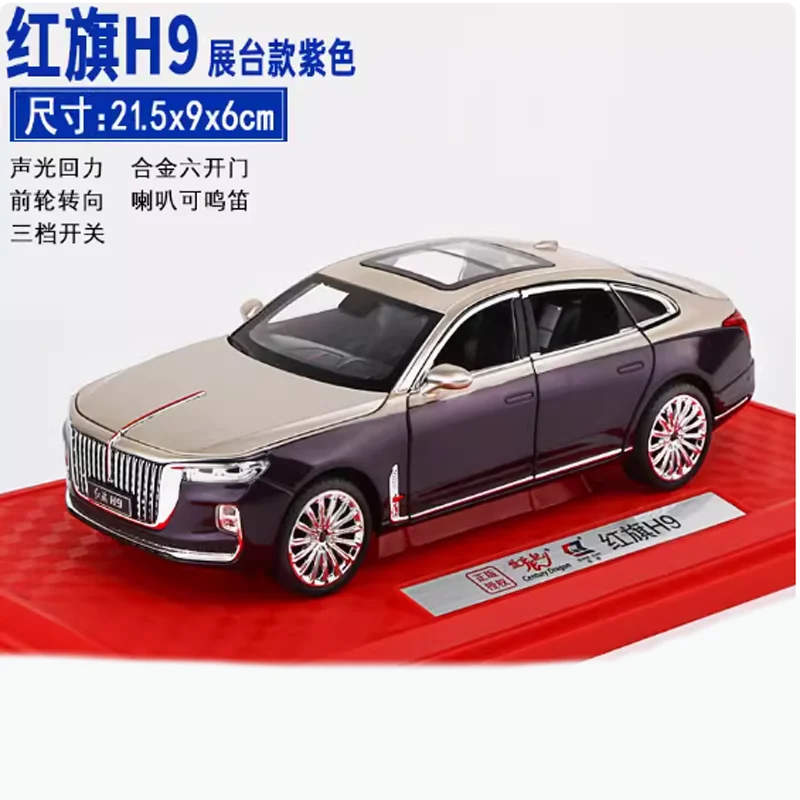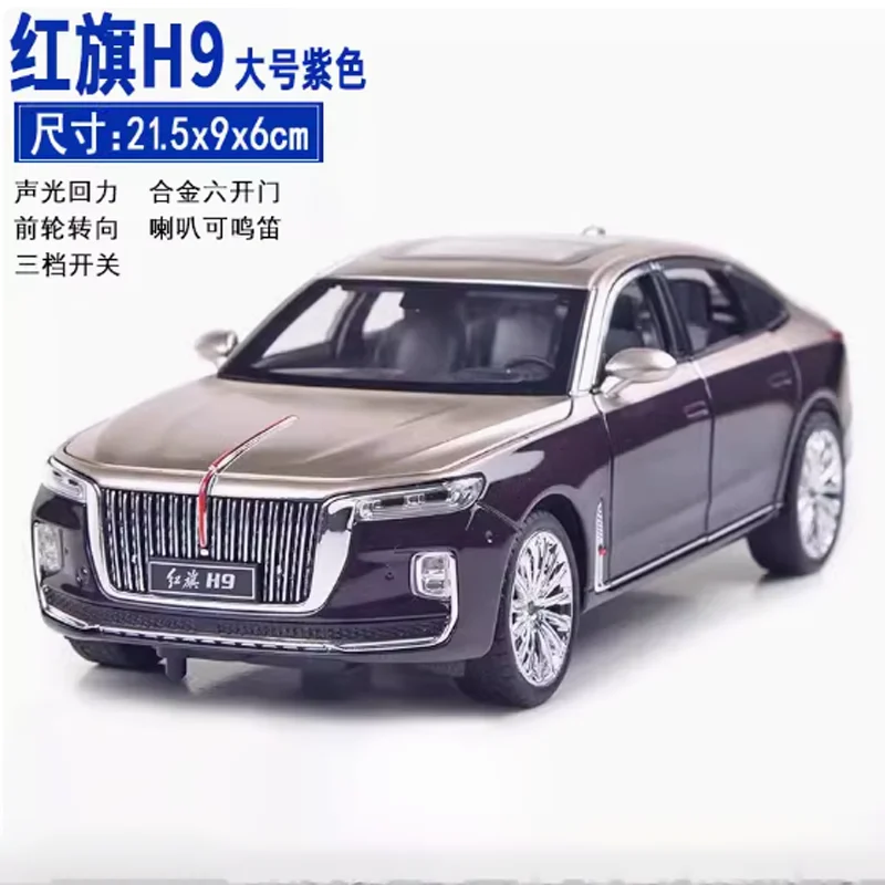 This meticulously crafted 1:24 scale diecast model of the Hongqi H9/HS9 offers a strikingly realistic representation made from alloy, plastic, and rubber. With vibrant glossy finishes in various colors such as black, dark purple, metallic copper, and bronze, it captures the sleek, modern design featuring fine details like vertical slatted grilles, elongated slim headlights, and carefully designed side mirrors and windows. Perfect for collectors, decorations, or gifts, this model measures proportionally to the real vehicle and is packaged in a foam box for safe display. Suitable for ages 14 and up, it’s an elegant tribute to luxury automotive craftsmanship.