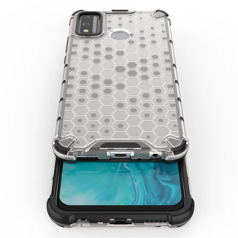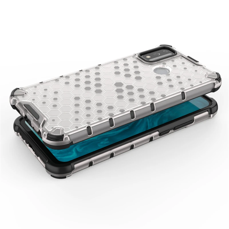 Picture yourself confident, with this stylish and highly protective case securely around your Honor 9X or 9X Pro. Its transparent back showcases your phone’s original aesthetic while adding a layer of geometric sophistication through a subtle honeycomb hexagonal pattern etched on the interior surface. The dual-layer construction offers superior shock absorption and durability, ensuring your device is protected from daily impacts. Reinforced black silicone bumpers at each corner provide extra cushioning, and the raised edges around the camera and fingerprint sensor keep important surfaces safe. Available in vibrant colors—Blue, Black, Green, Red, and White—you can personalize your phone to match your style. This semi-wrapped, heavy-duty design balances sleekness with ruggedness for everyday confidence.