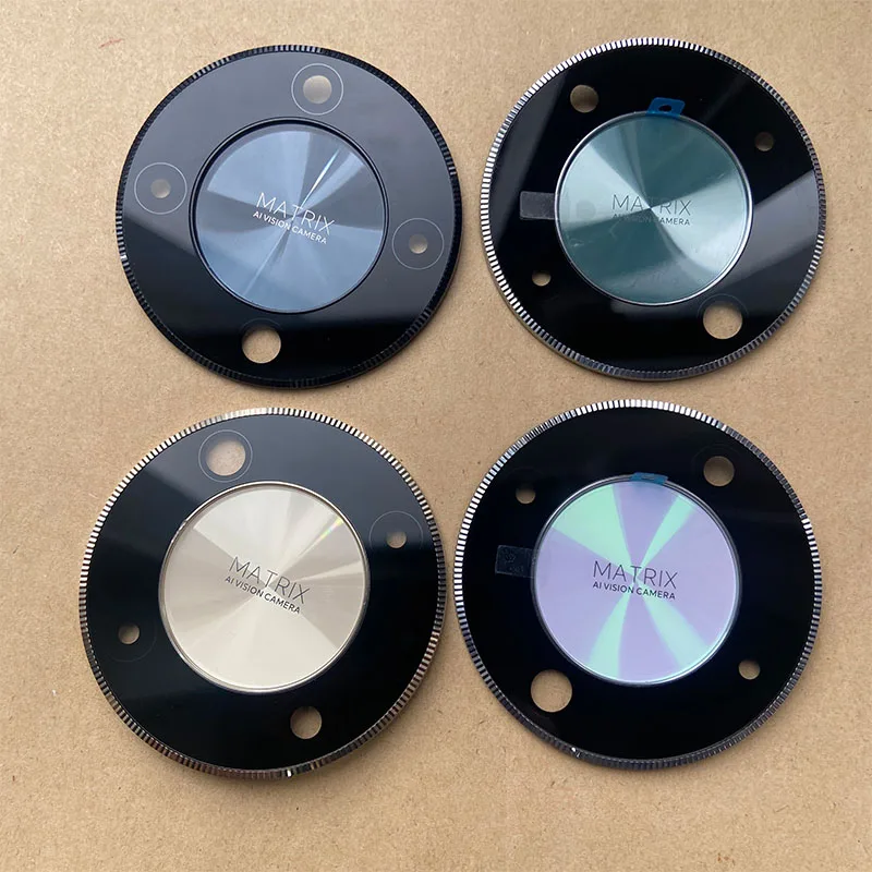 - Engaging central reflective glass featuring iridescent, holographic-like effects that shimmer in different colors, enhancing your camera’s aesthetic appeal and functionality.