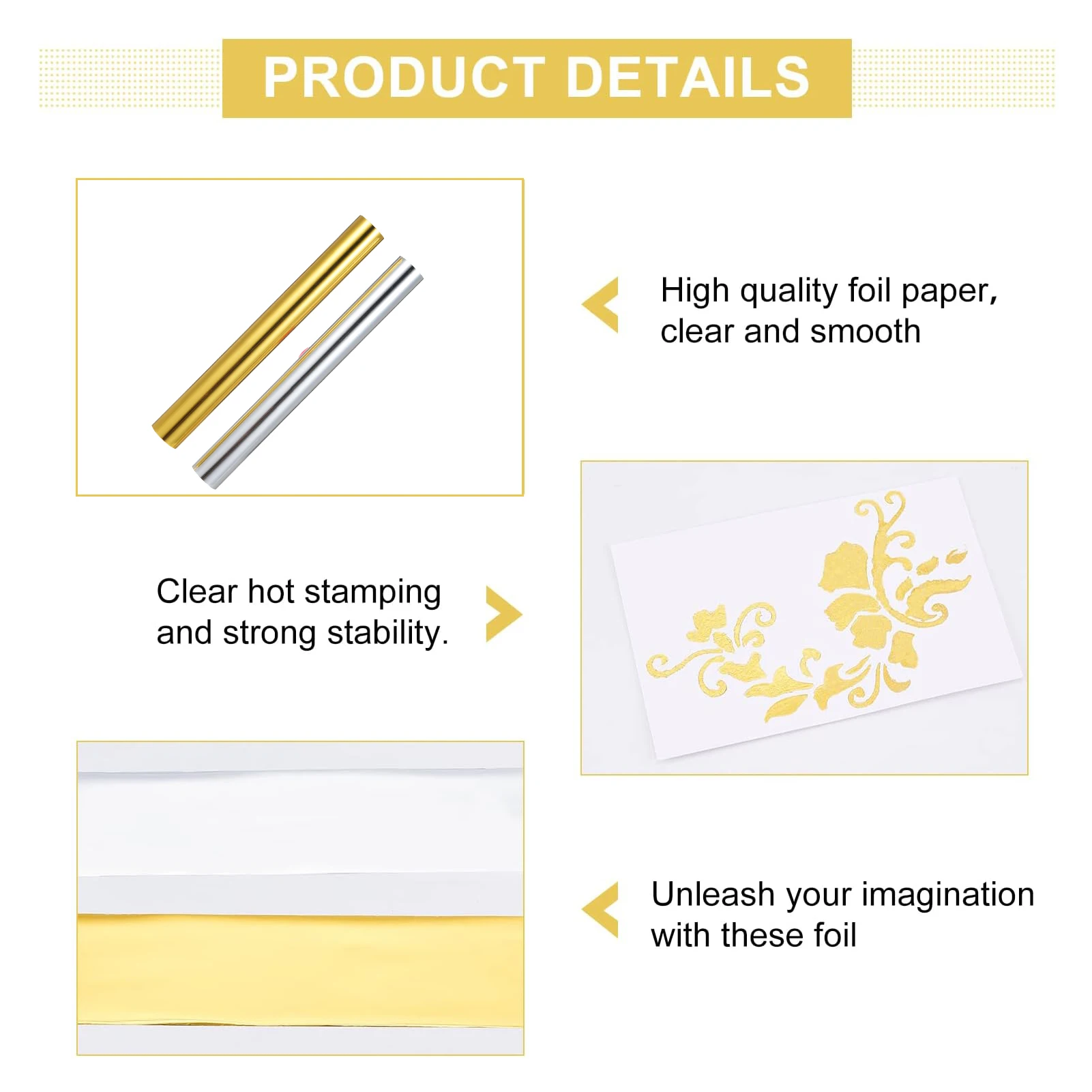 - Includes four high-quality foil rolls – two in gold and two in silver – each measuring approximately 150 mm wide and 3,000 mm long for extensive creative use.