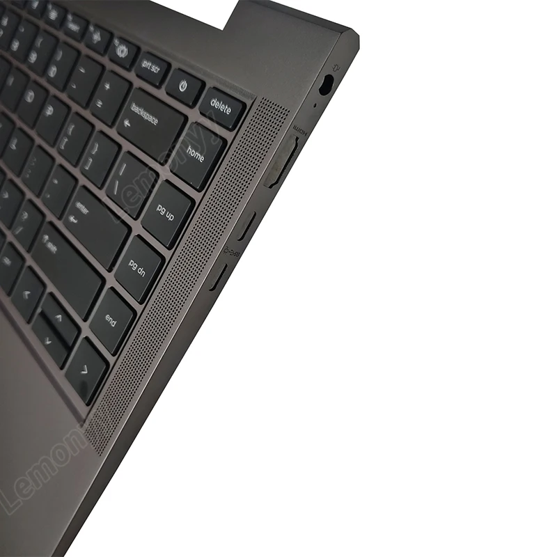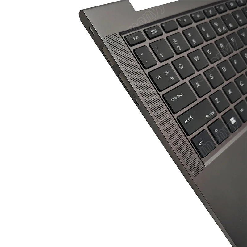 Transform your HP Dev One with this stylish laptop top case, designed to enhance both functionality and aesthetics. The dark grey or black finish gives it a sleek and modern appearance, while the full US keyboard layout features low-profile black keys with contrasting white lettering, improving visibility and ease of use. The integrated touchpad below the space bar provides a seamless design, and the textured areas flanking the keyboard not only add visual intrigue but are also functional for grip and ventilation. Elevate your experience with this replacement palm rest upper case cover that combines practicality and style.