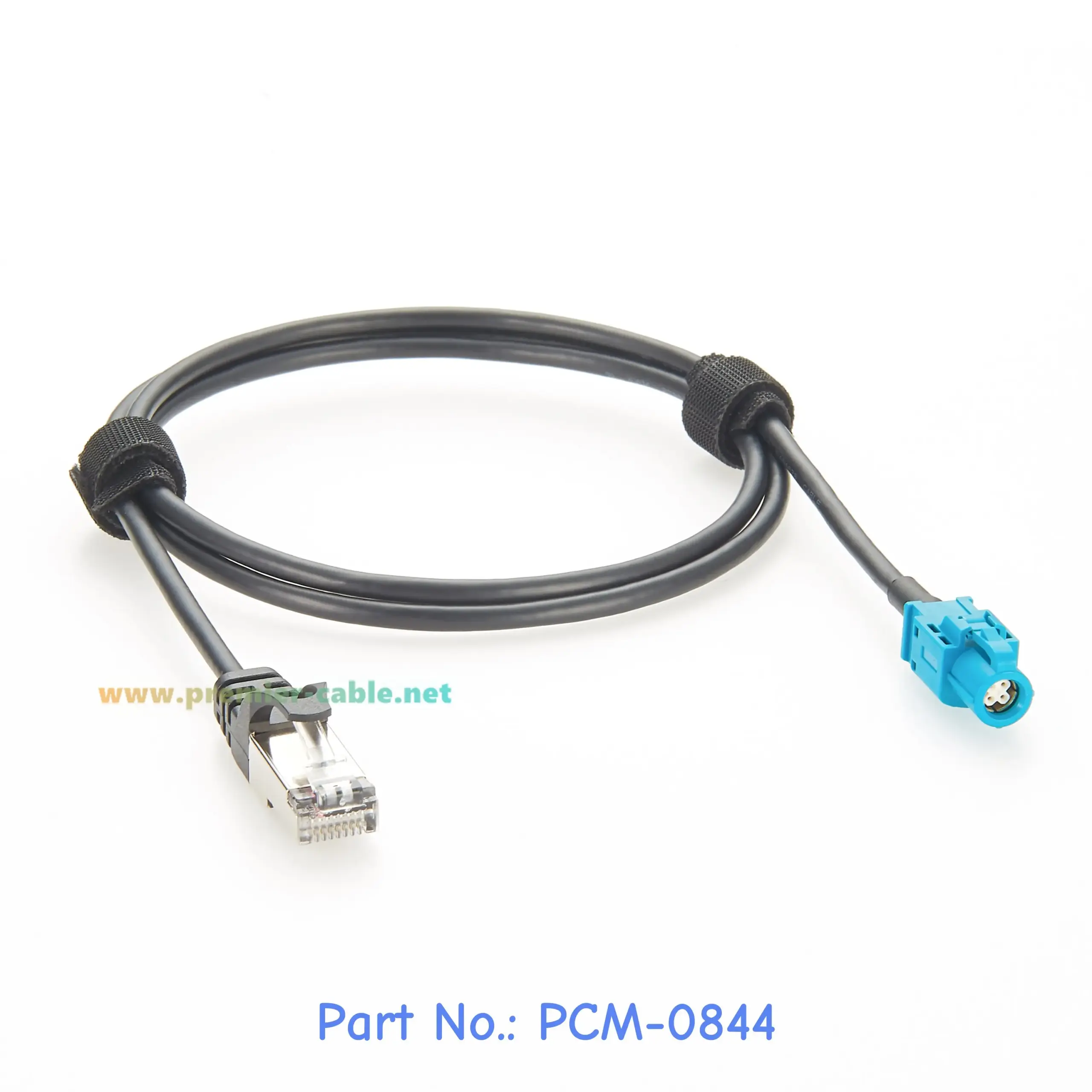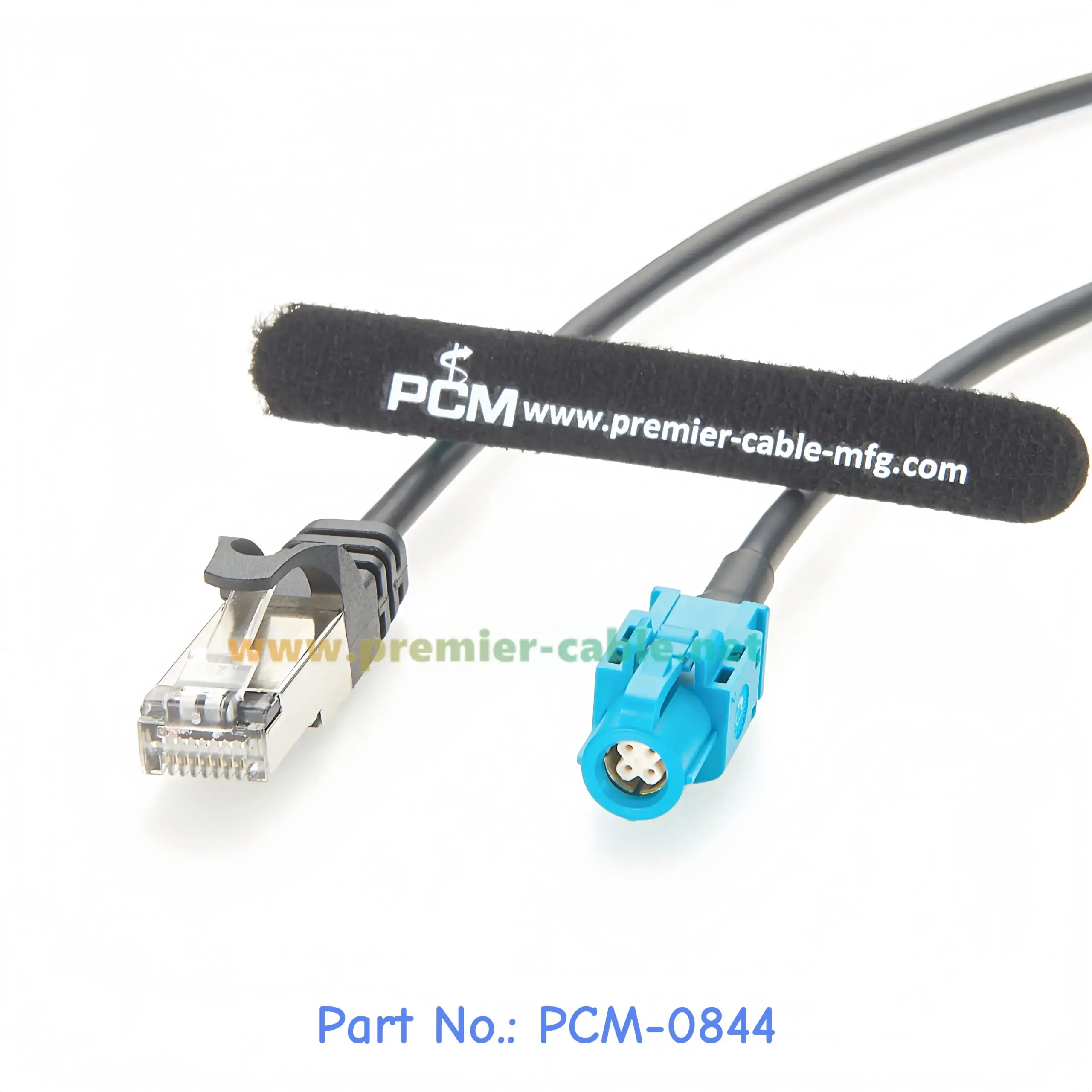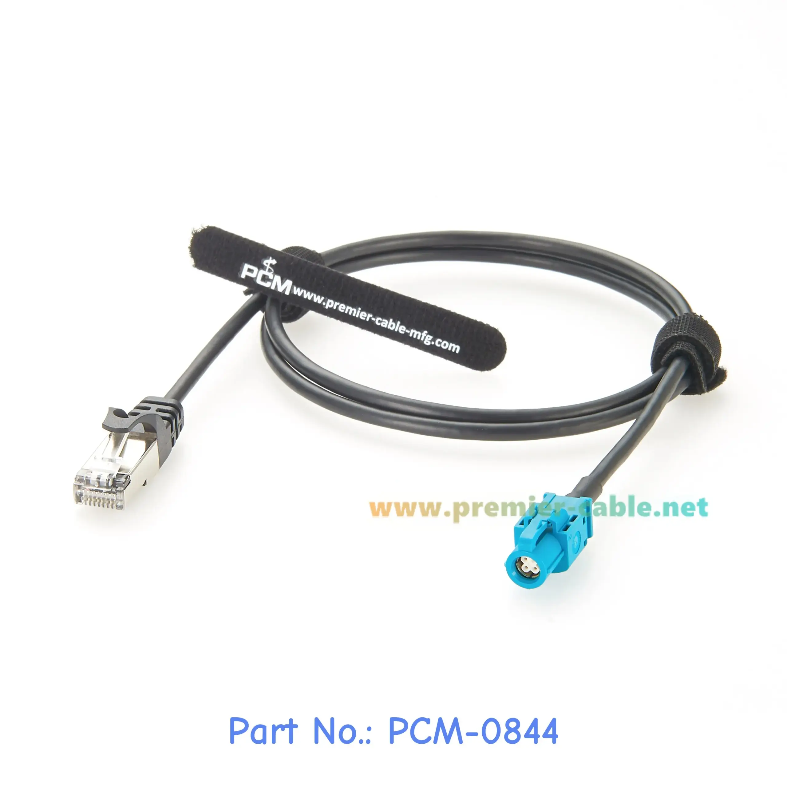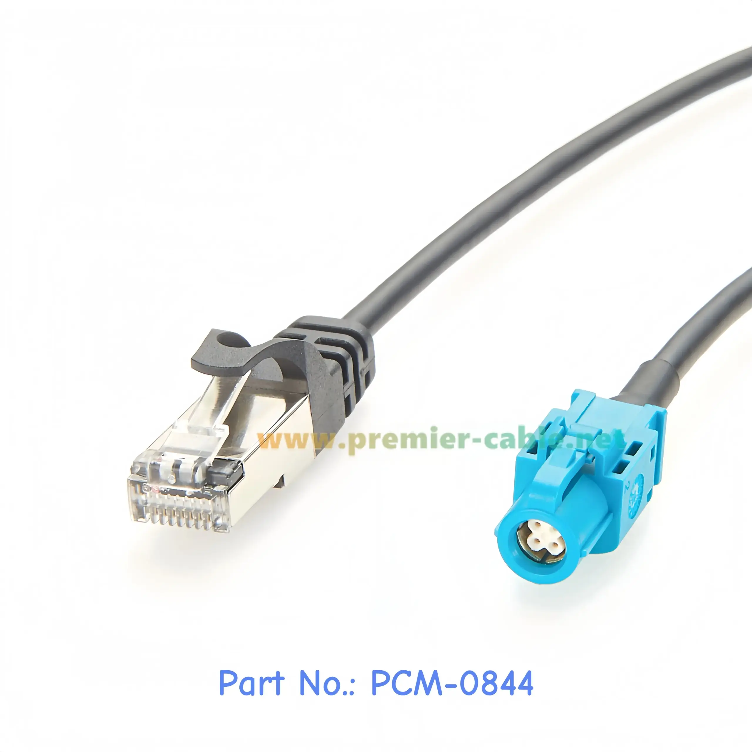 Connect your automotive or network systems with this 1-meter HSD to RJ45 Adapter Cable, featuring a blue female HSD (4-pin, Z code) connector and a transparent male RJ45 (8P8C) plug with gold-plated contacts. The black insulated cable with a 4.5mm diameter is made of high-quality Cat5e wire (26 AWG*) and supports Ethernet transmission rates up to 1 Gbps. Fully compliant with LVDS, Ethernet, and USB protocols, its multi-layer shielding ensures excellent signal integrity by reducing EMI and RFI. Designed for durability and precision, this adapter is ideal for ADAS, telematics, in-vehicle infotainment, and autonomous systems, providing reliable high-speed data transmission.