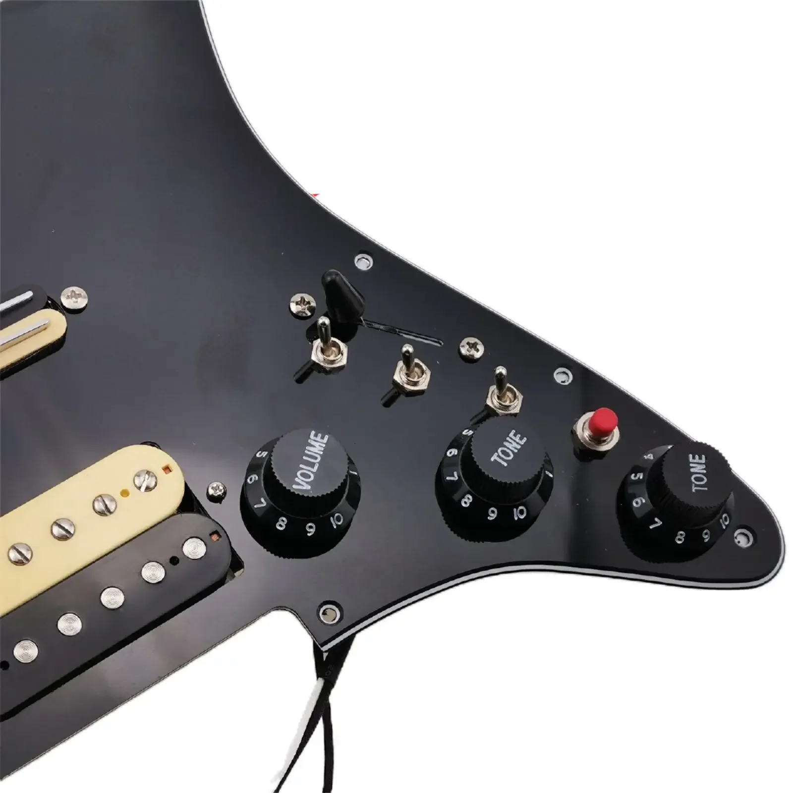 - Prewired HSS pickguard with three Alnico V humbucker pickups, resistance values 10K, 10.9K, and 15.8K, providing powerful sound options for versatile play styles.
