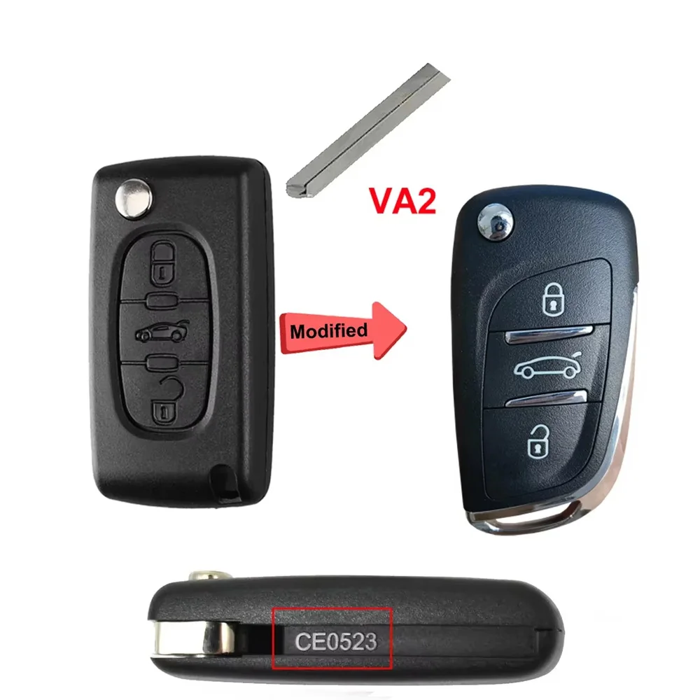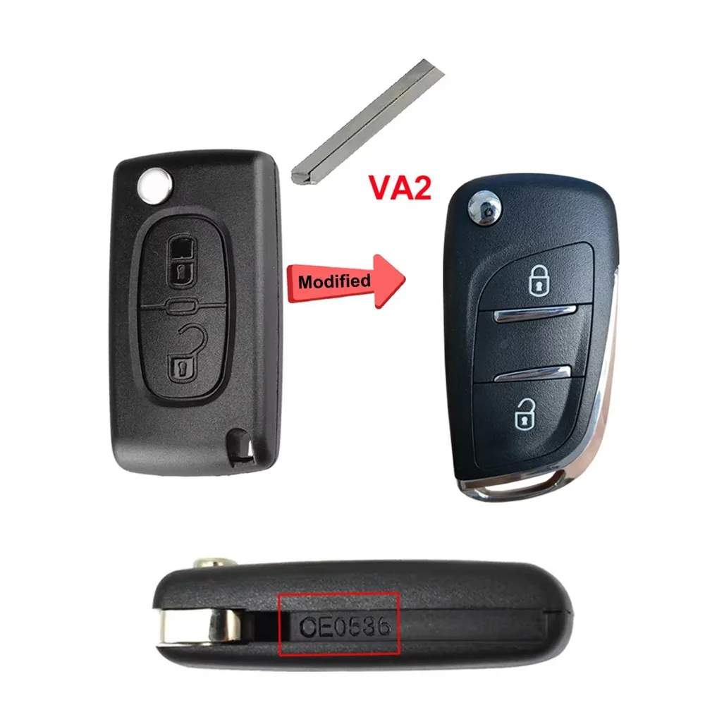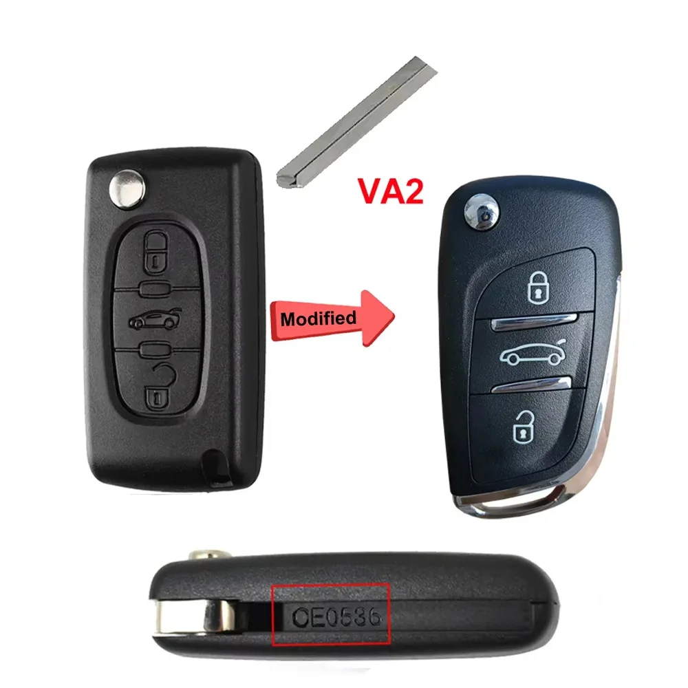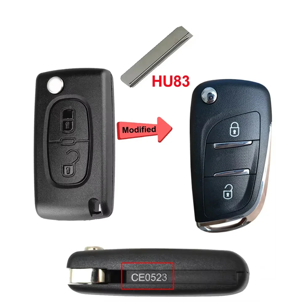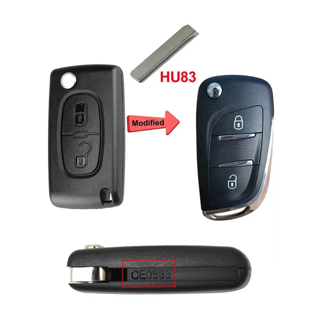 Transform your Citroen or Peugeot vehicle's key experience with this upgraded HU83 VA2 Modified Remote Car Key Shell Flip Case. This sleek key shell not only enhances your vehicle's aesthetic but also improves functionality with its modern rounded design. Transitioning from the ordinary rectangular key to a sophisticated three-button interface, this key shell features lock, unlock, and an additional function, which is perfect for a trunk release or panic feature. The durable material incorporates a smooth plastic finish and metallic accents, making it both stylish and robust for everyday use. Breathe new life into your car's key with an upgrade that combines practicality and elegance.