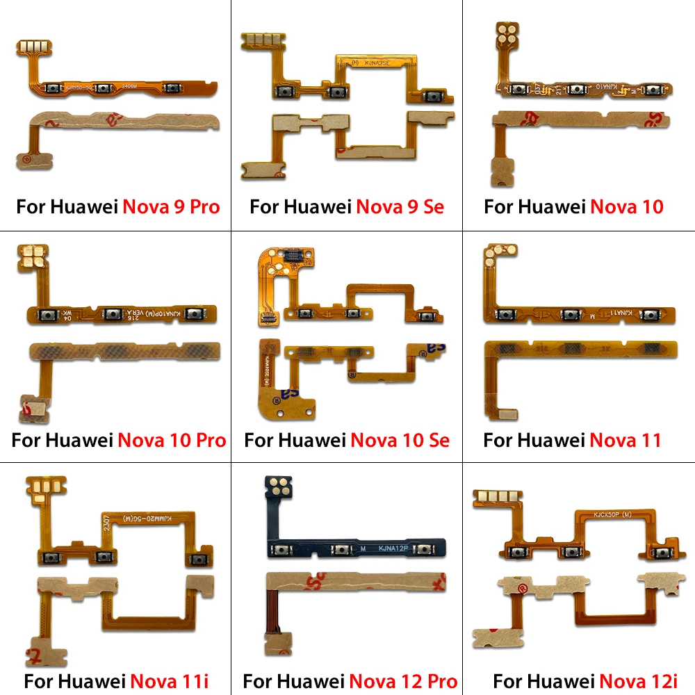 - Each set contains 10 flex cables tested to ensure compatibility and functionality across numerous Huawei models including Nova 8, 9 Pro, 10, 11, and Nova Y61; designed for power and volume buttons.