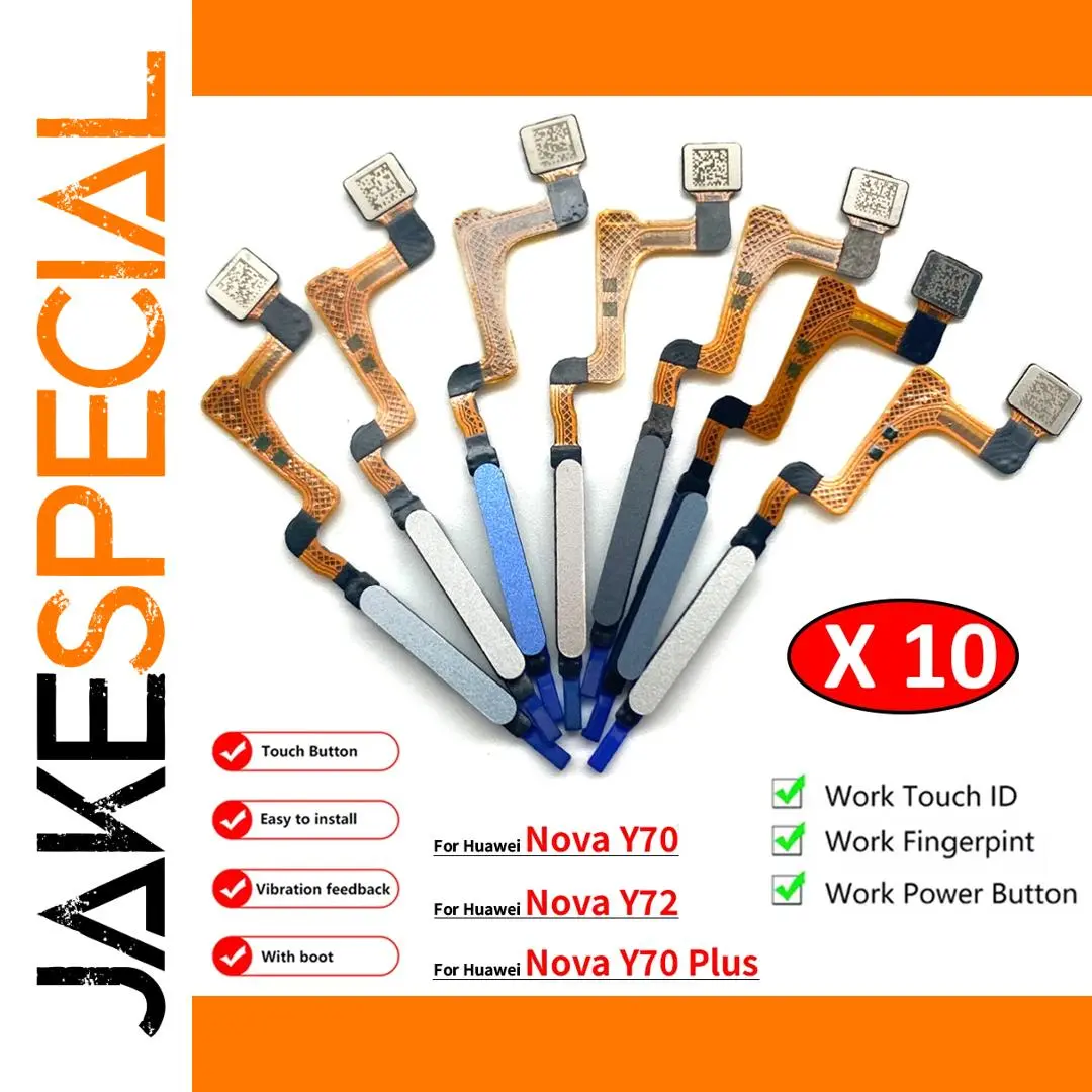 This set of 10 flexible ribbon cables is designed for Huawei smartphones, specifically compatible with Nova Y70, Y70 Plus, and Y72 models. Each cable features a fingerprint sensor, home, return, and menu buttons, with a sleek bar design. Available in vibrant colors including black, blue, gold, silver, white, and light blue, these high-quality cables are tested for functionality before shipping. They include reinforced connectors for secure installation and precise signal transfer, ensuring reliable performance. Suitable for replacing or upgrading internal components, this set provides a comprehensive solution for maintaining the fingerprint and button functionality of your Huawei device, blending technical precision with vibrant style.