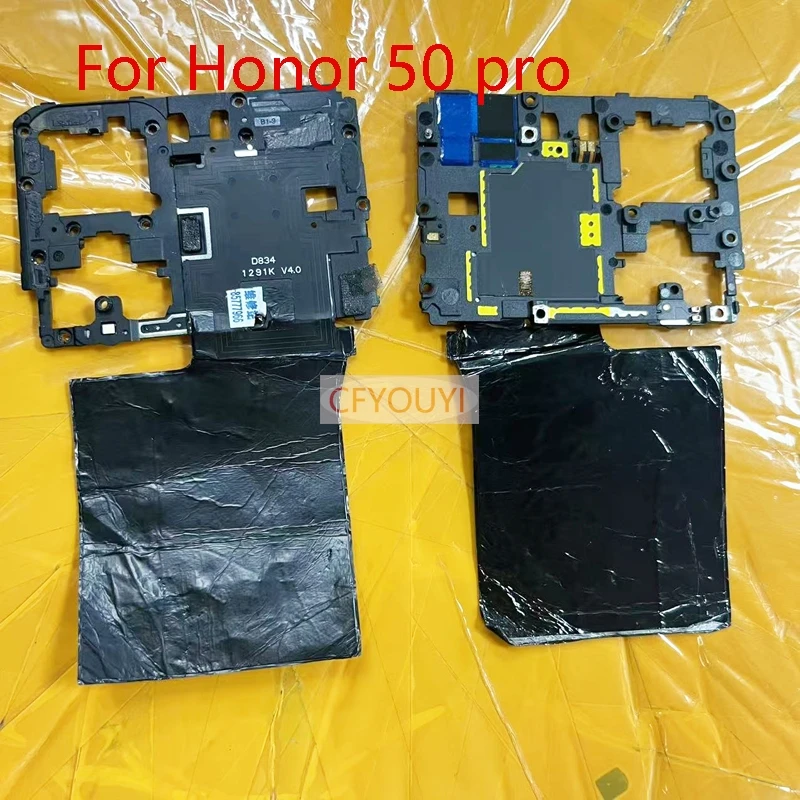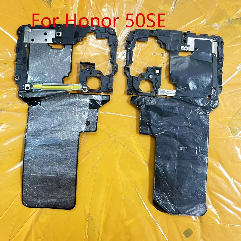Enhance your Huawei Honor 50SE series smartphone with this high-quality NFC antenna sensor flex cable, designed specifically for models like 50SE, 50Pro, 60, 60SE, 70, and 100. Crafted as a tested, disassembled replacement part, it ensures seamless connectivity and reliable performance. Its sleek black plastic frame integrates a shiny metallic shield for an elegant, modern look while offering durable support. The flexible cable, routed efficiently within the frame, restores NFC functionality, aiding in contactless payments and data sharing. Designed for easy installation, this component complements your device's internal architecture, maintaining optimal speaker and sensor alignment. With precise cutouts and notches, it blends industrial style and technical precision, ensuring your device functions flawlessly again. Trust this component for a perfect, durable repair solution.