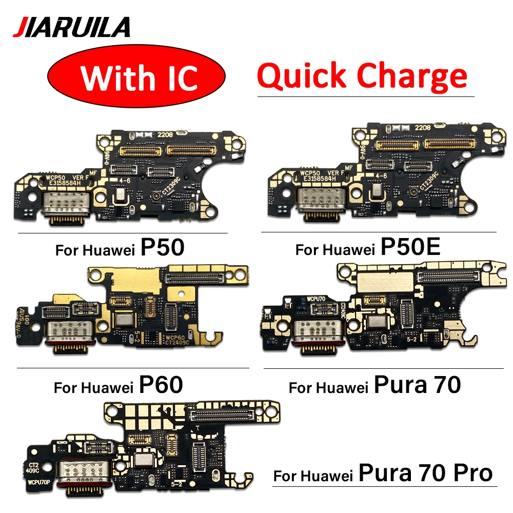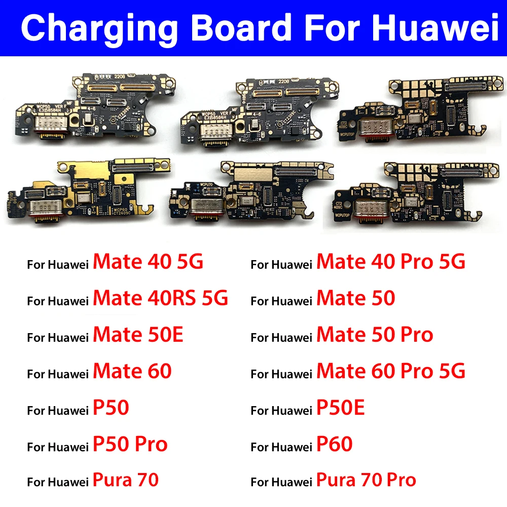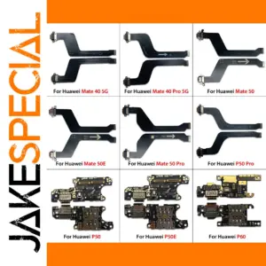 Experience seamless connectivity with this set of flexible USB charging port flex cables designed specifically for various Huawei smartphones. The sleek black ribbon design features a slim, elongated shape with a subtle curve, emphasizing durability and precision fit. Each flex cable includes intricate connectors and printed installation arrows, making replacement straightforward. These cables ensure support for fast charging, data transfer, headphone OTG, and microphone functions, providing reliable performance for your device. Suitable for multiple Huawei models such as P50, P50E, P50 Pro, P60, Pura 70, Pura 70 Pro, Mate 40 5G, and Mate 50, this set guarantees compatibility and restoration of essential charging and data functions. Their high-quality build ensures a long-lasting, strong signal connection for daily use.
