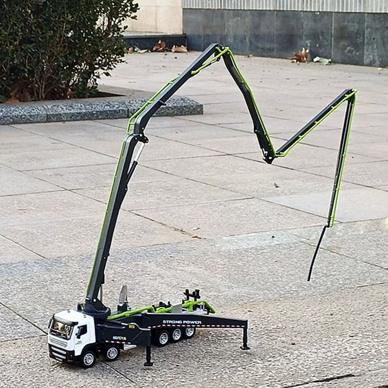 Imagine having the Huina 1709 1/50 Alloy Concrete Pump Truck in your collection, a stunning scale model that merges engineering precision with artistic craftsmanship. The vibrant design features a striking white cab adorned with bold green and black accents. Its articulated boom, which extends upward, reflects real-life machinery's functionality, allowing you to display it in a myriad of positions. Crafted from high-quality alloy, this model is not just for play; it showcases the beauty of working vehicles while serving as a captivating decor piece. Perfect for collectors and enthusiasts alike, this truck enhances any display and sparks creativity in educational settings.