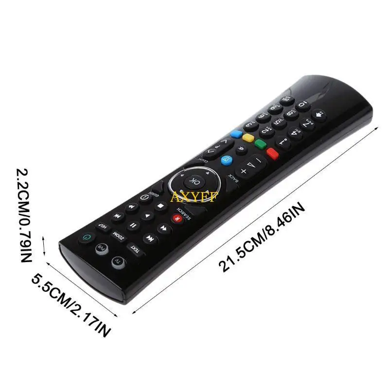 - This remote control’s technical specifications include dimensions 21.5 cm x 5.5 cm x 2 cm, standard black color, and a transmission frequency optimized for stable wireless connectivity.