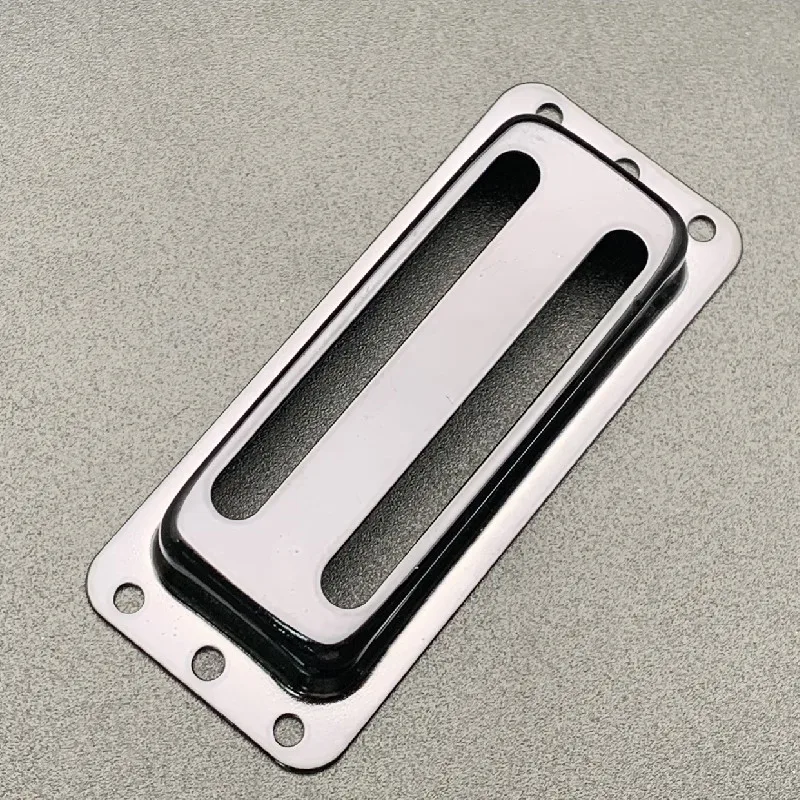 Enhance your electric guitar’s look and performance with this high-quality brass two-line humbucker cover, measuring 90x38mm. Available in reflective chrome, sleek black, and lustrous gold, this durable and precisely crafted cover features elongated parallel slots for a sleek, functional design. Suitable for various electric guitar models, it offers a polished appearance that seamlessly combines modern style with classic durability. Easy to install with four screw holes, this new, unused replacement part is perfect for customizing and upgrading your guitar’s pickups, providing both protection and aesthetic appeal for an improved playing experience.