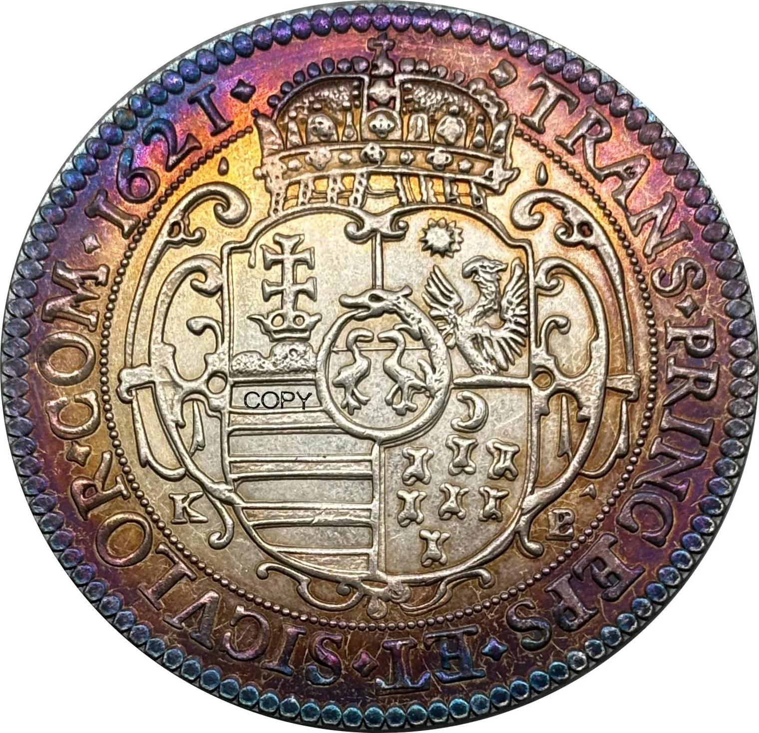 This meticulously crafted replica coin commemorates the Hungarian States 1621 Thaler featuring Gabriel Bethlen, made from metal with an antique European plated finish. Dated to 1840 or earlier, it showcases detailed relief: Bethlen in ornate armor with intricate patterns, textured chainmail, and a beaded rim. Available in silver, multi-colored, and black, each coin offers a high-quality, authentic-looking imitation designed solely for collection purposes. Perfect for history enthusiasts and collectors, this custom-made piece emphasizes craftsmanship and detail, with slight variations in color and finish, capturing the regal, vintage aesthetic of antique European currency.
