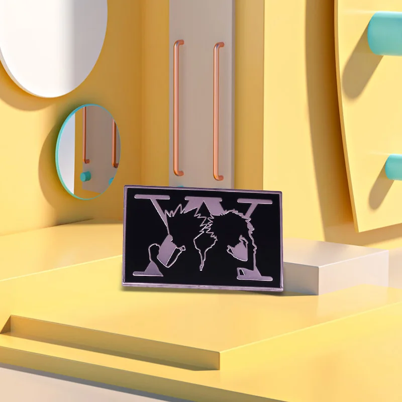 Step into your collection or outfit with this striking, elegant pin that captures the essence of Gon and Killua’s characters in a modern silhouette style. Perfect for fans and collectors who want to add a touch of anime artistry to their accessories. Its durable copper construction and subtle metallic accents ensure it will be a lasting piece in your collection. Whether attached to your jacket, backpack, or display case, this pin invites admiration and sparks conversations about your favorite characters. Elevate your anime memorabilia today with this custom-designed, minimalist Hunter x Hunter badge.