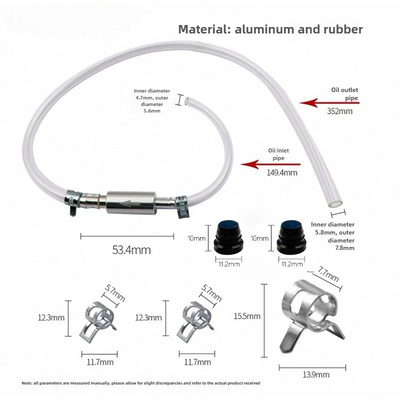 Experience effortless hydraulic system bleeding with this high-quality, durable brake fluid bleeder hose kit. Designed for universal compatibility across cars, motorcycles, ATVs, dirt bikes, and scooters, it simplifies maintenance with a transparent, flexible rubber hose for easy fluid flow observation. The high-strength aluminum quick-connect fitting ensures quick, tool-free attachment, while the integrated one-way check valve prevents air backflow and contamination. With a robust 2.2-inch valve and multiple compatible tube diameters, this kit offers efficient and secure sealing during bleeding or disassembly processes. Its corrosion-resistant materials and easy-to-clean components guarantee longevity and reliable performance, making brake and clutch maintenance safer and more manageable for both seasoned mechanics and enthusiasts.
