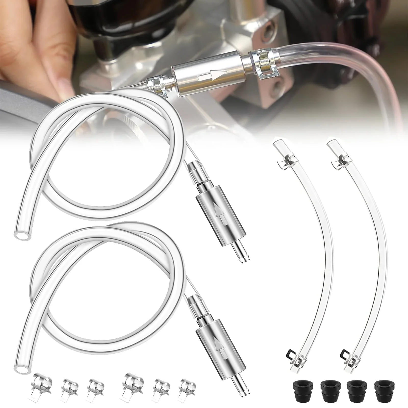- Includes two hoses of varying lengths, rubber caps, and metal or plastic clamps for secure, leak-proof sealing during hydraulic fluid bleeding.