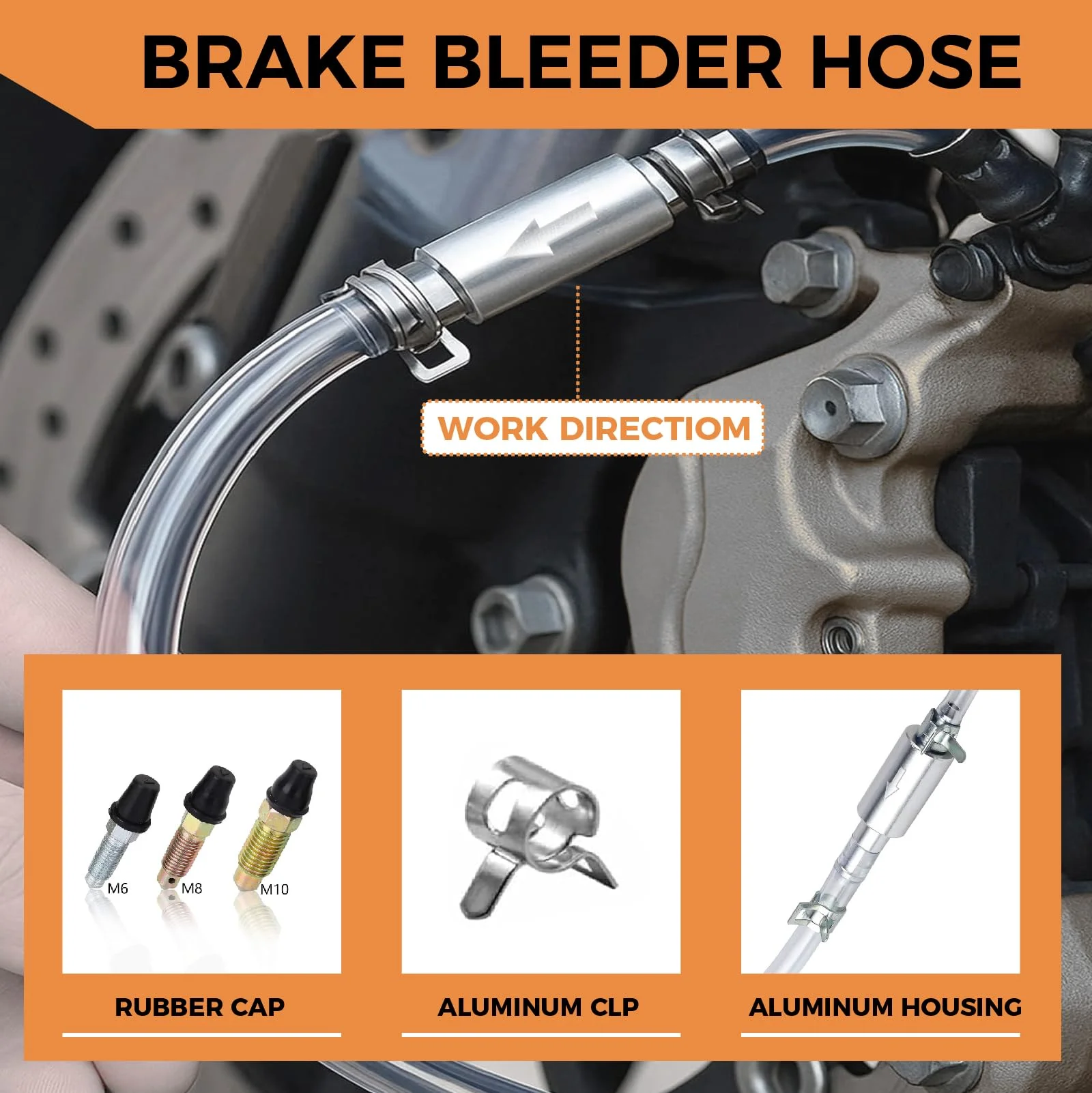 Keys features of the brake fluid bleeder hose kit