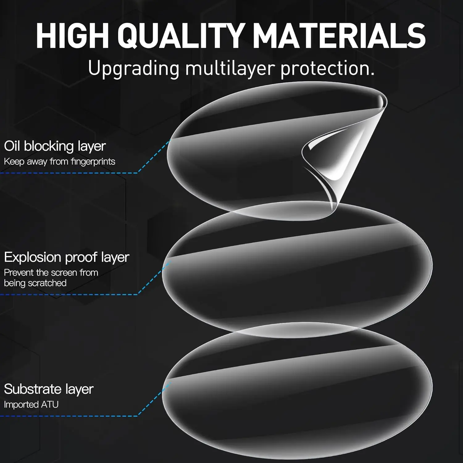 - Constructed from premium hydrogel material, offering excellent flexible protection that absorbs shocks and resists fingerprints, keeping your screen pristine at all times.