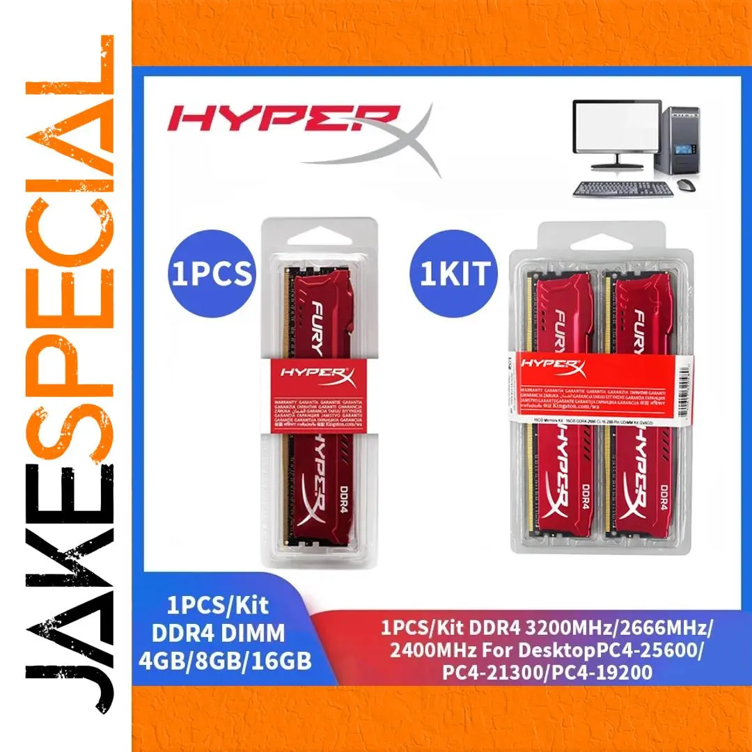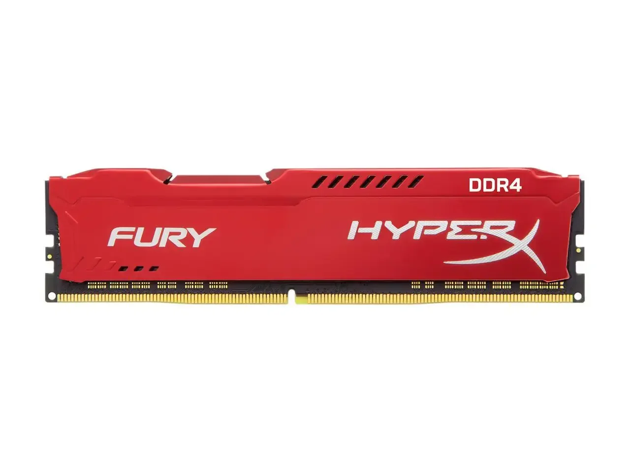 Experience the power and performance of the HyperX Fury DDR4 RAM, designed for desktop enthusiasts. Available in capacities of 4GB, 8GB, and 16GB, this RAM provides superior speed with options for 2400MHz, 2666MHz, and an impressive 3200MHz frequency. With its sleek red heat spreader and prominent “HYPERX” logo, it not only looks great but also enhances thermal performance with ribbed cooling fins. Whether you're gaming or multitasking, this RAM delivers the speed and reliability you need. Picture your system running smoothly and swiftly with these advanced memory modules, and elevate your desktop experience to the next level.