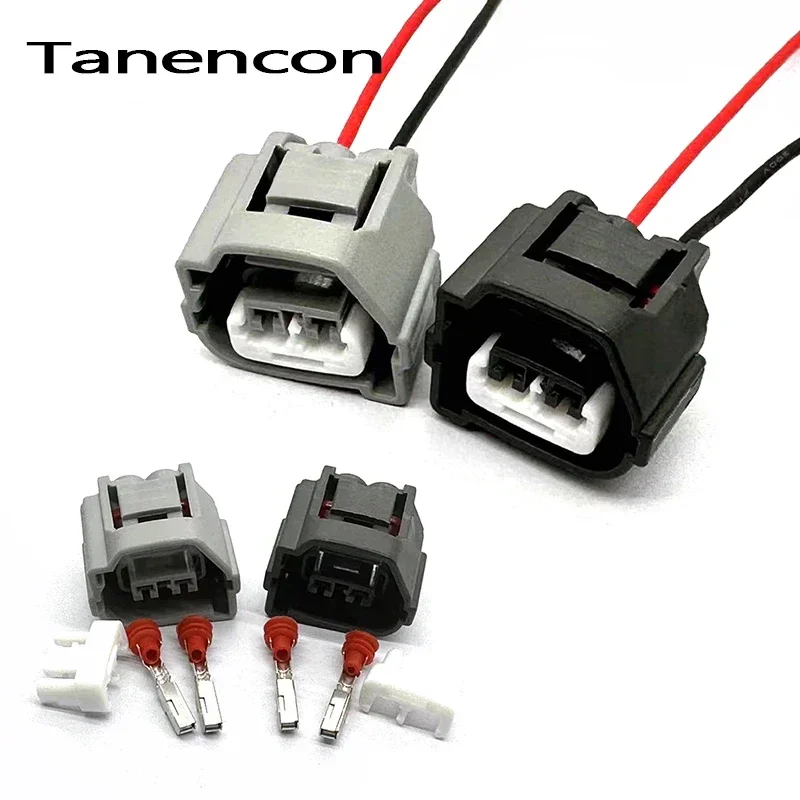 Experience reliability and convenience with this specially designed set of 2-pin automotive connectors, perfect for front fog lamp installations in Hyundai vehicles. The connectors, featuring a gray and a black option, offer durable performance under automotive conditions. Each connector boasts a smooth or matte finish, reliable locking mechanisms, and sturdy red and black wires, ensuring a secure connection that stands the test of time. Ideal for replacements, these connectors guarantee compatibility with part numbers 90980-10899 and 90980-10901, making them a practical choice for your fog lamp needs.