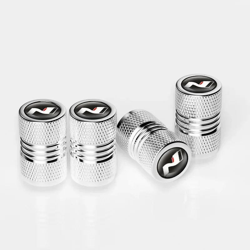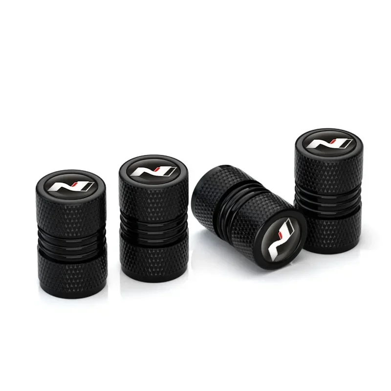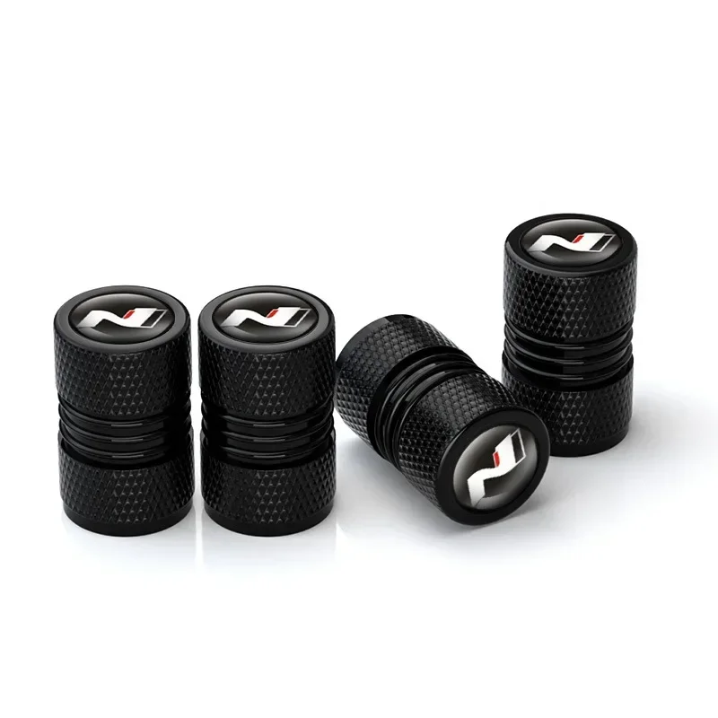 Enhance your Hyundai N line vehicle’s look with this set of four high-quality aluminum alloy valve caps, measuring 17mm by 11mm. Designed for models including I20, I30, IX35, Tucson, Kona, and Elantra, these durable caps feature a textured, knurled surface for a secure grip and a sleek circular end displaying the Hyundai N logo with a stylized white line and red accents against a glossy black background. Available in red, black, or silver, they add a sporty, refined touch to your tire wheel stems while offering long-lasting protection. Easy to install and perfectly compatible, these valve covers elevate your car’s style and functionality.
