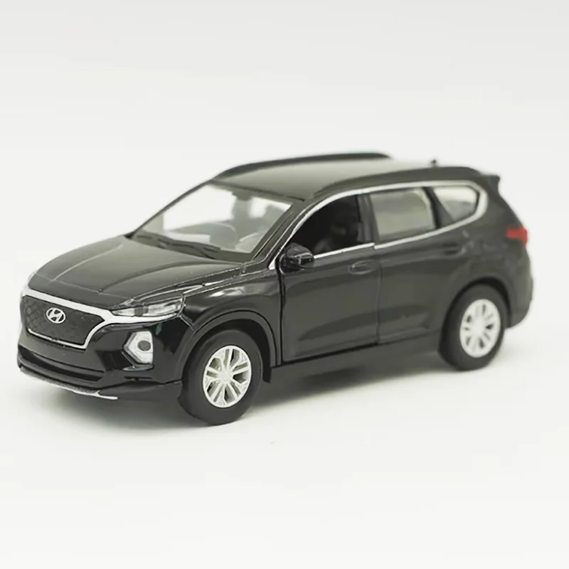 Discover the realism of this diecast model of the Hyundai Santa Fe 2018, expertly crafted in a sleek black finish with a shiny, glossy coating that closely mimics the actual vehicle’s exterior. Designed at a 1:38 scale using durable alloy and ABS plastic materials, it offers a robust and highly detailed appearance for collectors and enthusiasts. The model features a smoothly curved roof, subtly contoured hood, and realistic proportions that emphasize the SUV’s sophisticated design. Details such as slender headlights, a prominent black grille with the Hyundai logo, and realistic wheel arches with molded wheels add to its authenticity. Perfect for static display, this replica highlights the SUV’s elegant silhouette, making it a captivating addition to any collection, accentuating your passion for automotive craftsmanship.