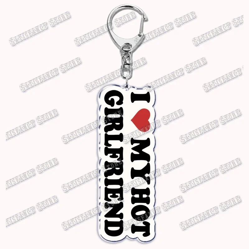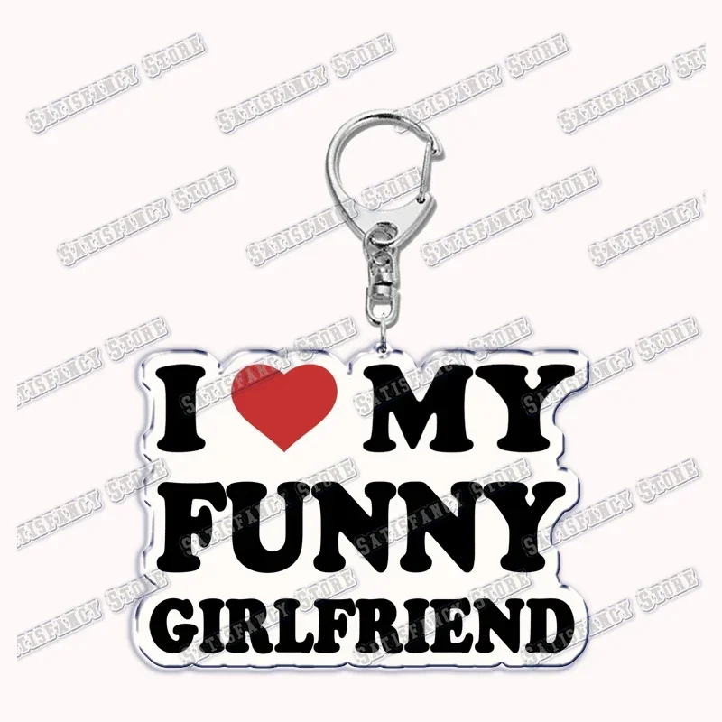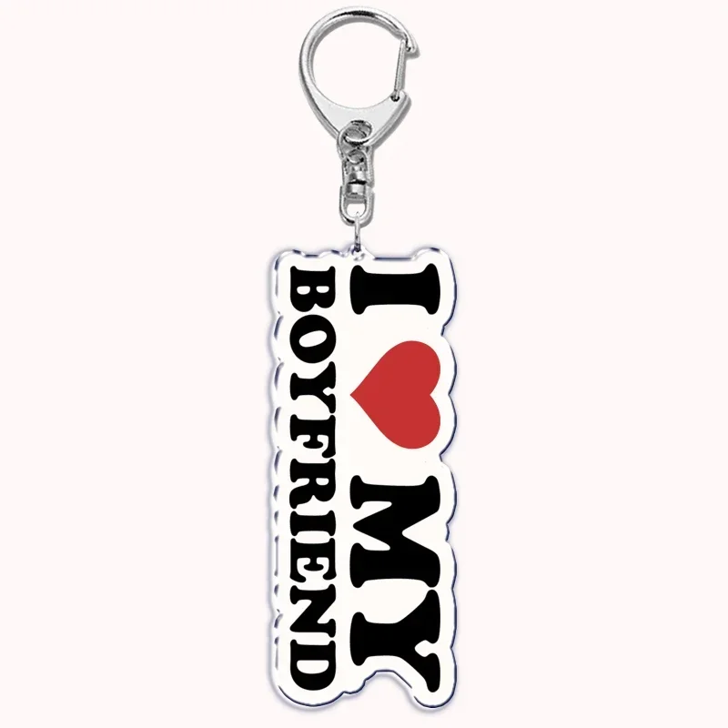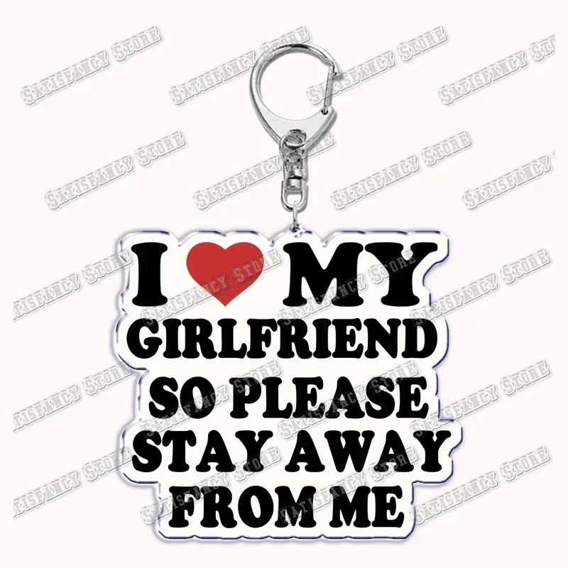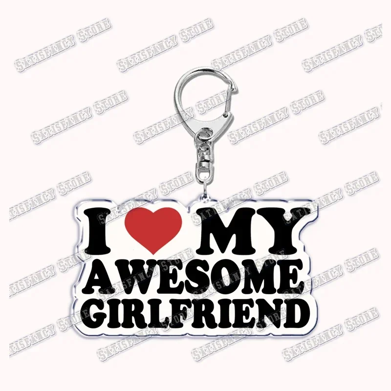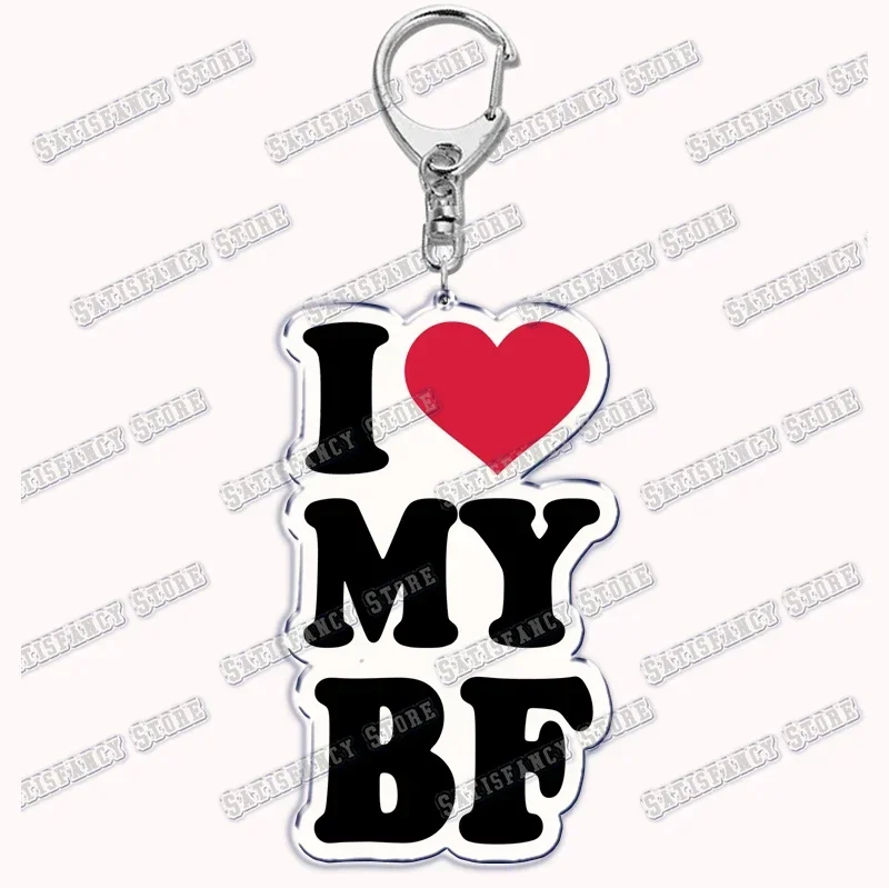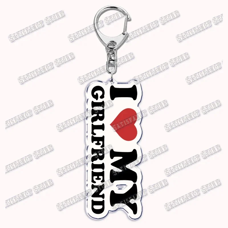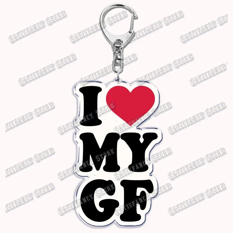 - The keychain features a striking design with the text “I LOVE MY GF” in black and red, making it a heartfelt accessory.