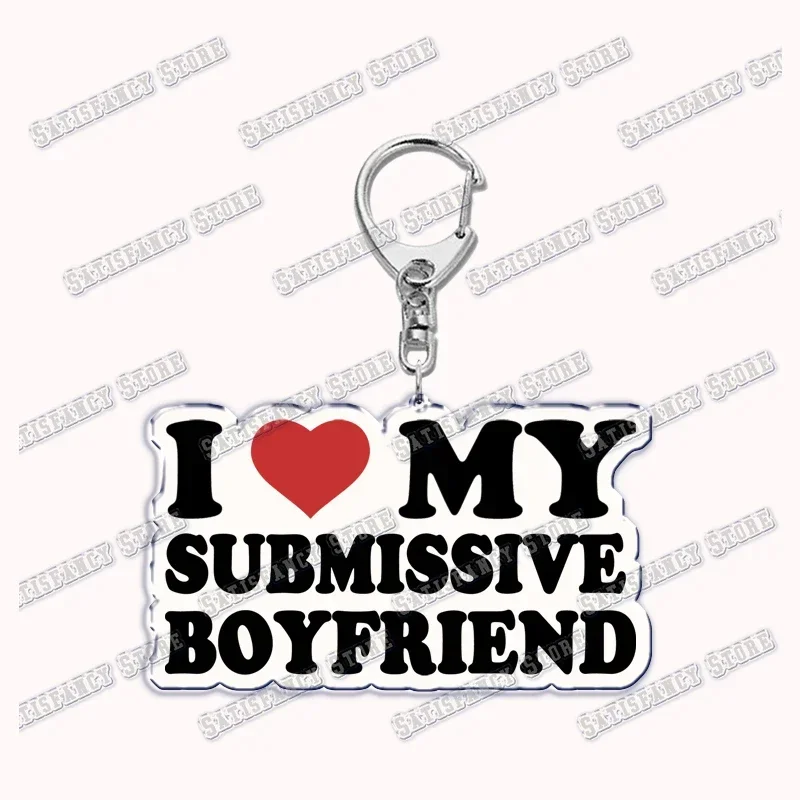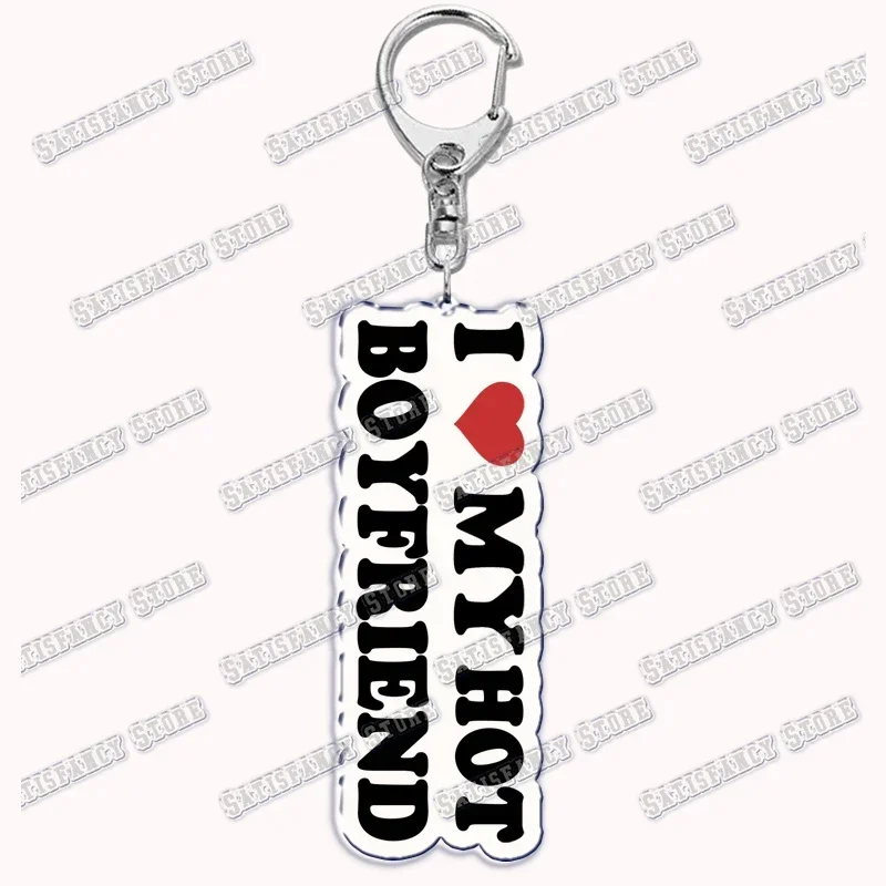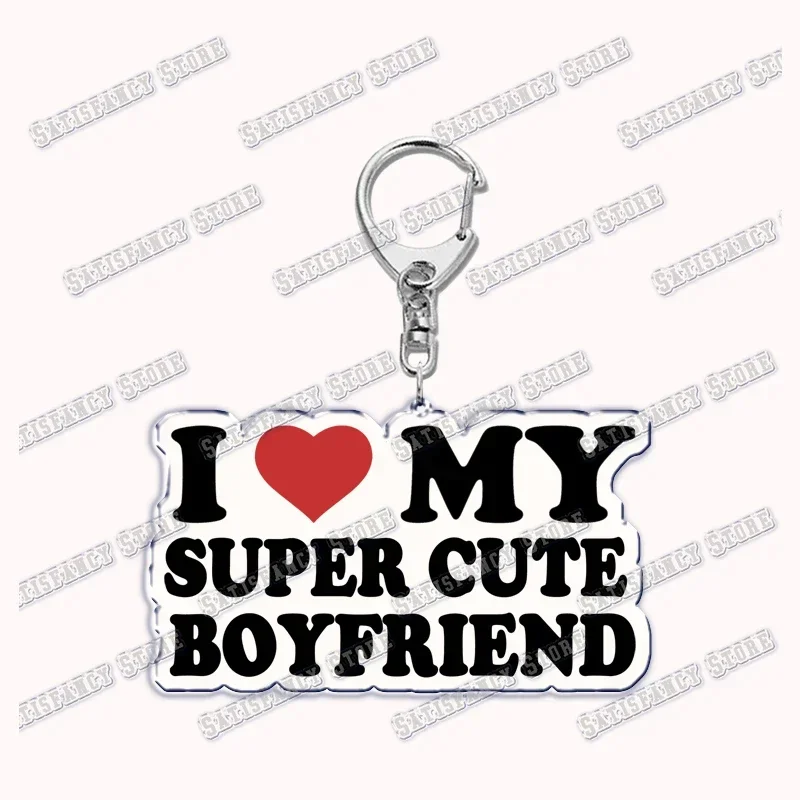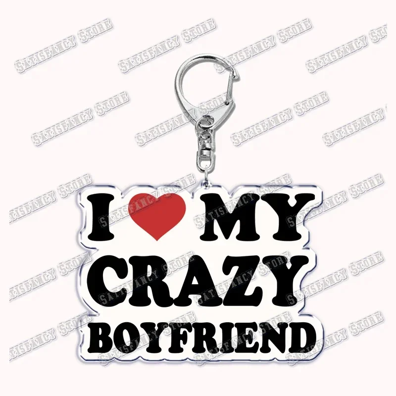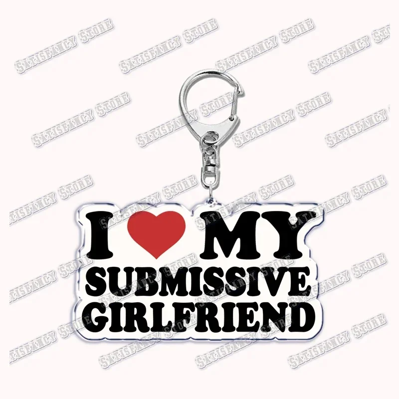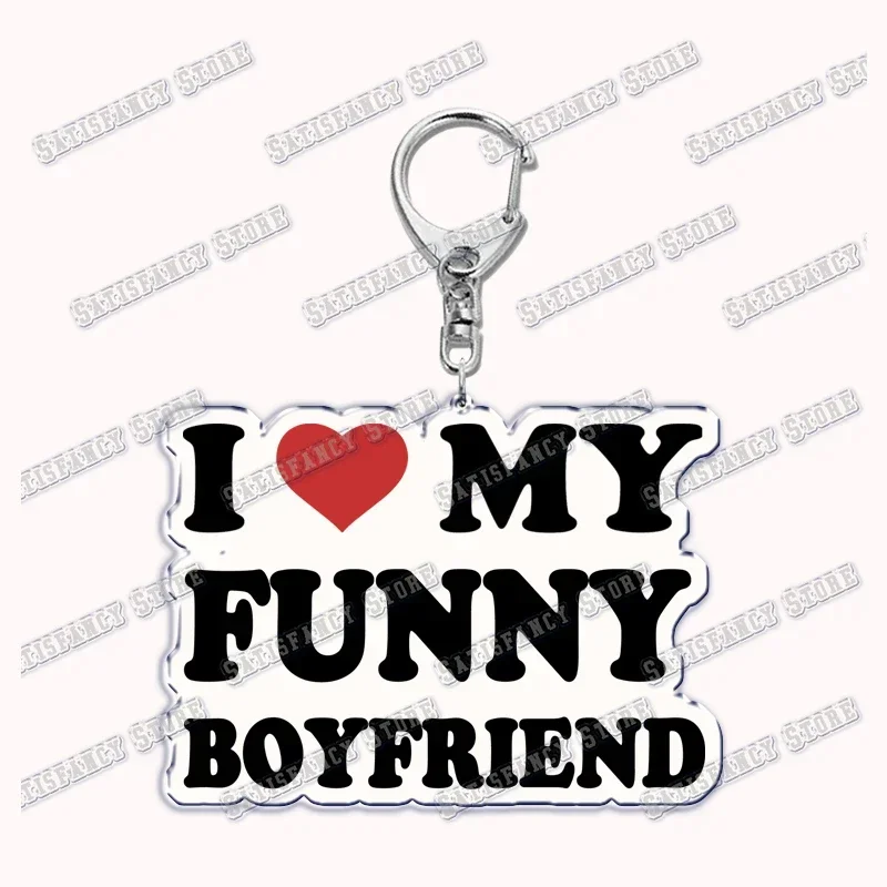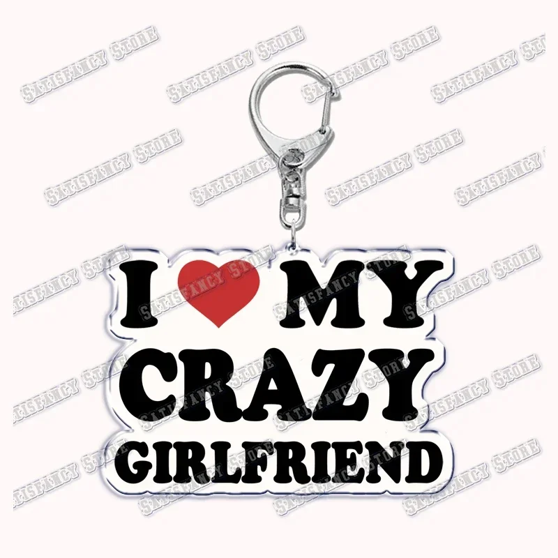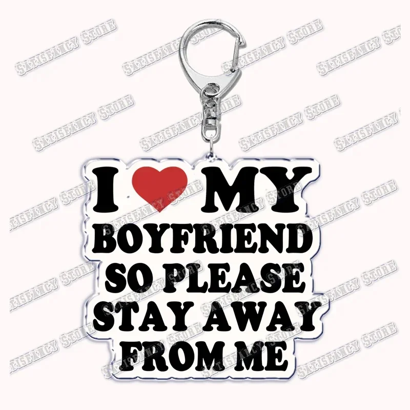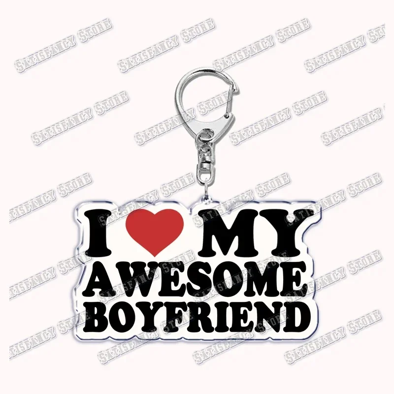 - The keychain features a striking design with the text “I LOVE MY GF” in black and red, making it a heartfelt accessory.
