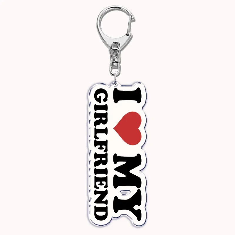 Transform your keys or bags with this charming acrylic keychain that proudly displays the phrase “I LOVE MY GF” against a clean white background. The bold black text paired with a vibrant red heart graphic creates an eye-catching design that's perfect for expressing affection. Crafted with a shiny finish and durable acrylic, this lightweight accessory is designed for daily use. Complete with a sleek silver stainless steel lobster clasp, you can easily attach it to your belongings. This keychain is an ideal gift for any occasion, ensuring your love is always close at hand.