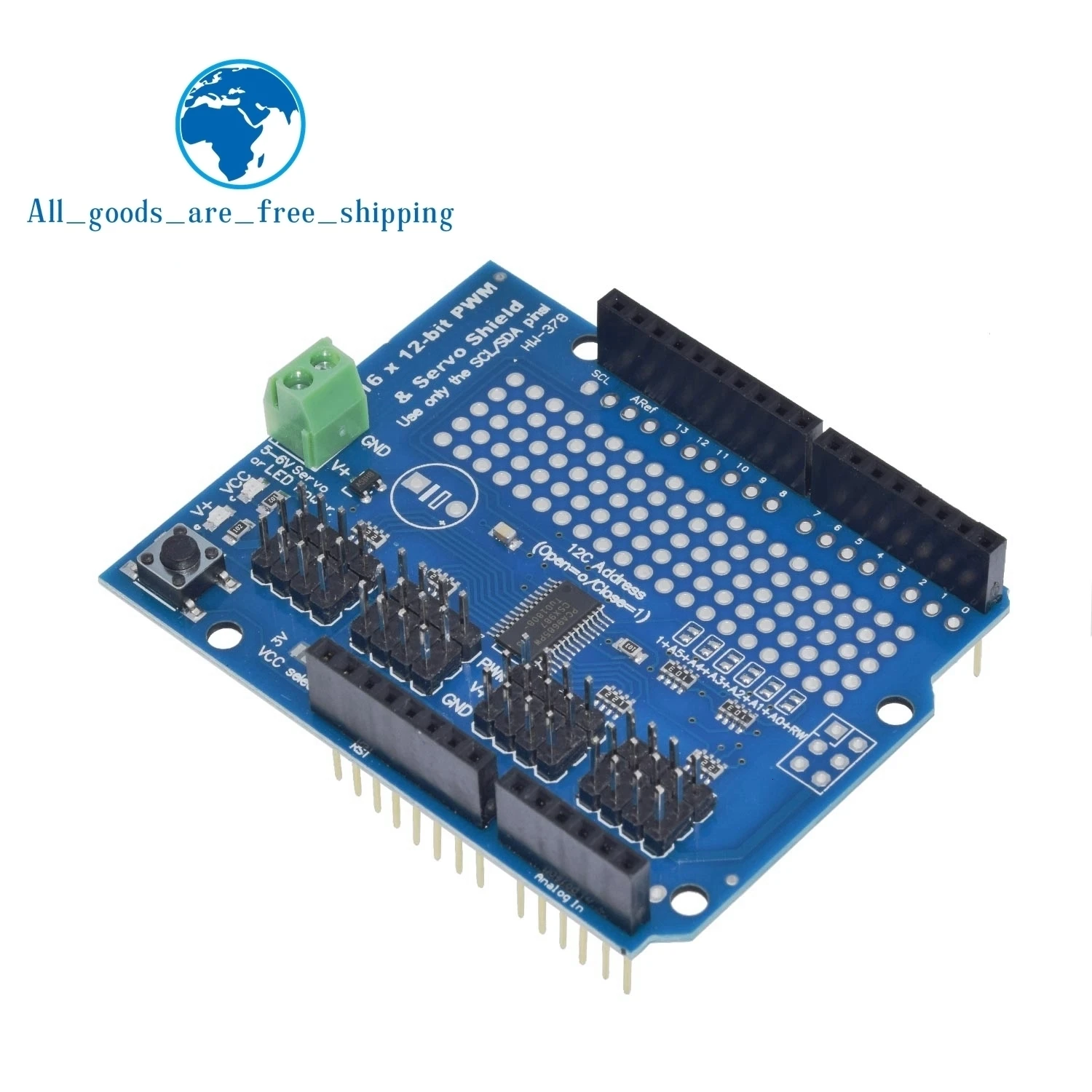 I2C Motor/Stepper/Servo Control Shield for Microcontrollers