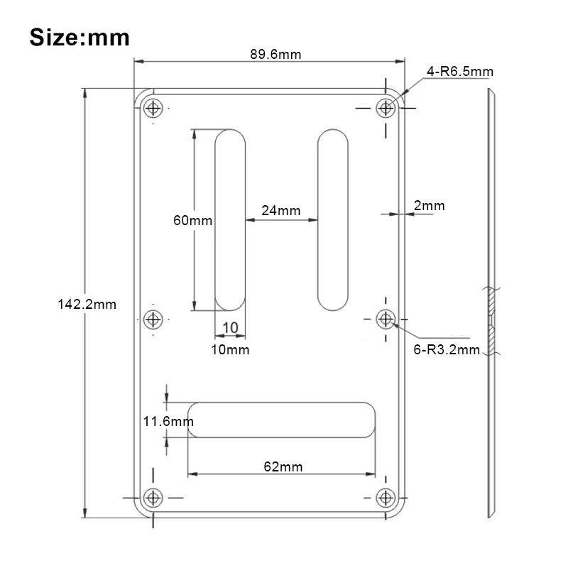 - Four small circular mounting holes at each corner allow secure attachment to your guitar; screws are not included, offering flexibility for your preferred hardware.