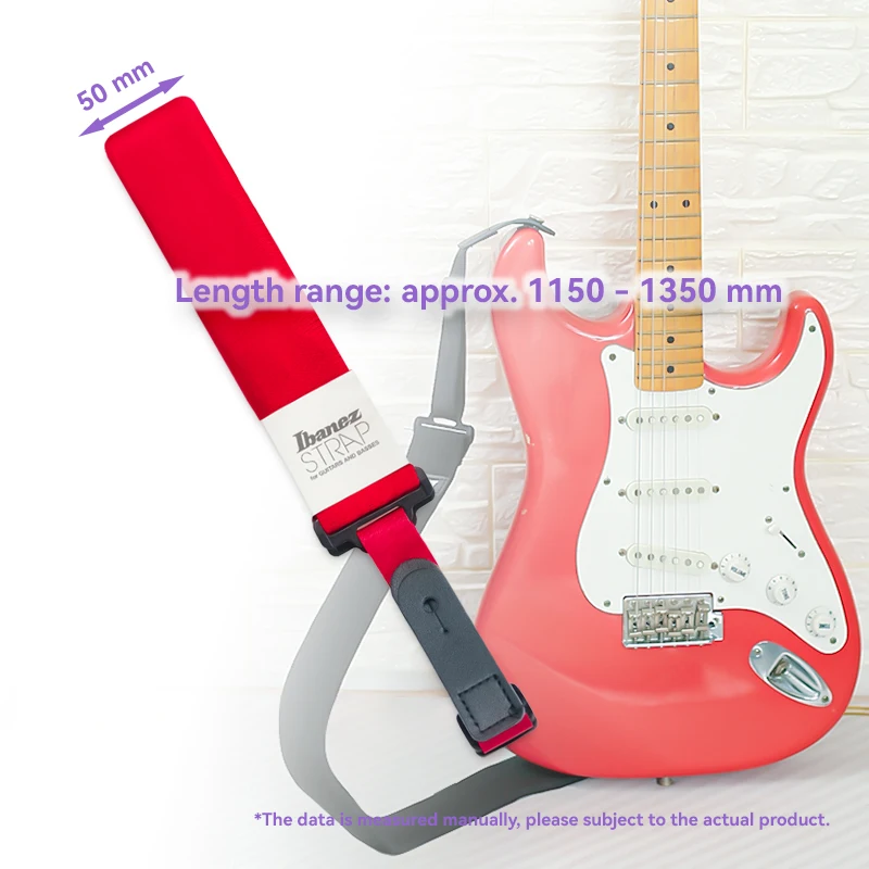 The Ibanez Guitar Strap offers musicians the perfect blend of comfort and functionality. Designed with a thickened sponge that is approximately 7 mm thick, it provides exceptional support for long practice sessions or performances. This adjustable strap features a width of about 50 mm, ensuring a secure fit while adapting between 1150 mm and 1350 mm in length. Whether you're playing an electric guitar, acoustic guitar, or bass, this strap meets your needs with ease, allowing players to focus on their music without distractions.