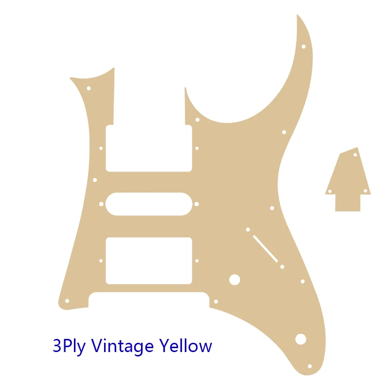 This electric guitar pickguard is a vibrant addition to MIJ Ibanez Jemjr guitars, presenting a stunning range of colors and finishes to suit every style. Crafted from high-quality PVC and composite materials, it ensures durability and resistance against scratches. Weighing only 200g, this 4-ply pickguard includes a real aluminum foil shield that efficiently eliminates unwanted noise. With various options such as 4Ply White Pearl and 3Ply Vintage Yellow, each pickguard is carefully designed with specific cutouts for pickups and controls, making installation effortless. Make a statement with this eye-catching pickguard that combines aesthetic appeal with superior functionality.