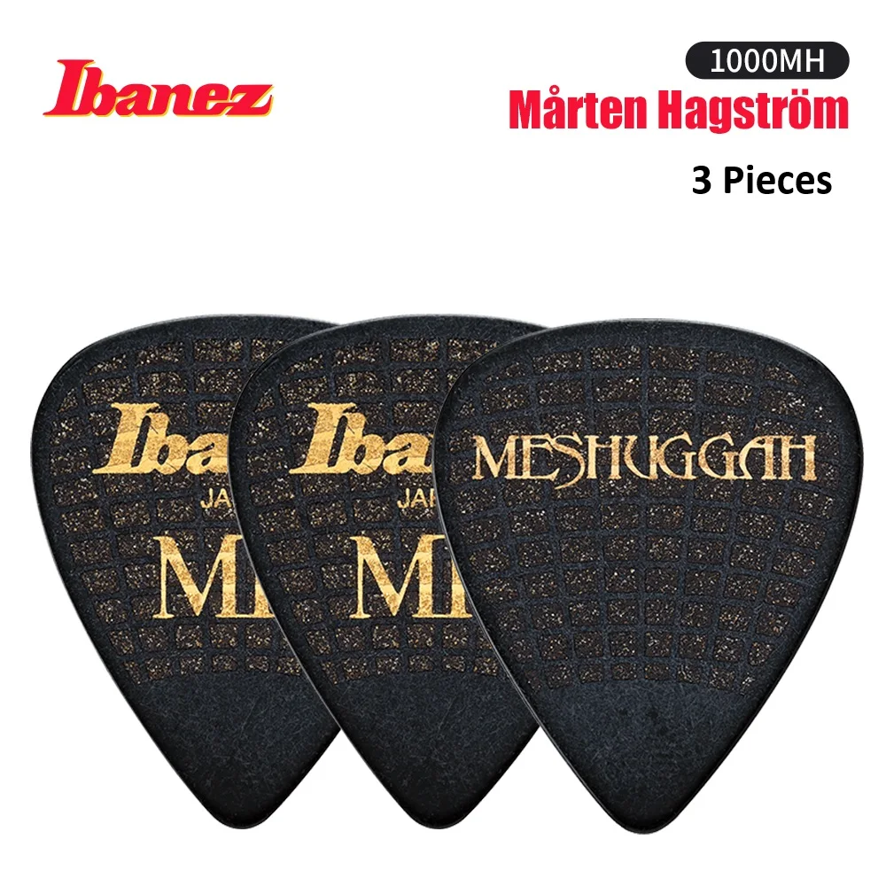 - The striking black finish is complemented by gold-colored inscriptions, including “Ibanez,” “Mårten Hagström,” and the model “1000MH,” adding a sleek, professional aesthetic.