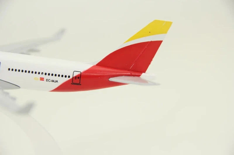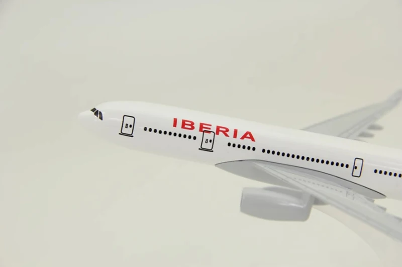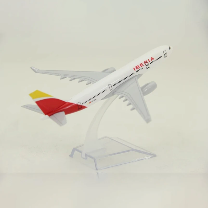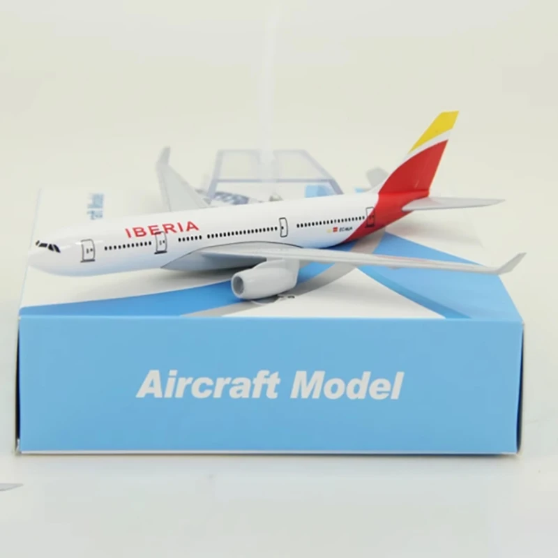 Bring your collection to life with this detailed 1/400 scale diecast model of the Iberia A330-200 aircraft, measuring approximately 15cm in length. Crafted from durable diecast metal, alloy, and ABS plastic, this static display piece features a sleek white fuselage with bold red “IBERIA” lettering, a vibrant tail fin with a yellow-to-red gradient, and finely detailed wings and engines in metallic gray. Perfect for office, study, or display purposes, this non-electric model showcases realistic structural details and aerodynamic aesthetics, mounted on a transparent stand for a dynamic flying appearance. An ideal collectible for aviation enthusiasts aged 14 and above.