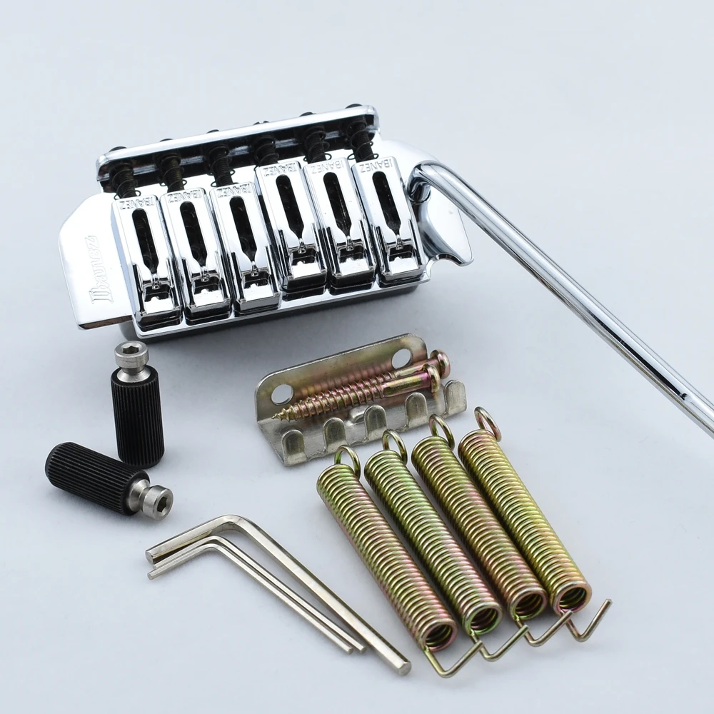 Elevate your guitar’s performance with the Original IBZ Backhand Chrome Electric Guitar Tremolo System Bridge. Designed for precision and durability, this tremolo system offers seamless action and excellent tuning stability, allowing you to enhance your playing experience. Weighing 650g, it features a sleek chrome finish that not only looks stunning but is built to withstand the rigors of regular use. Visualize yourself effortlessly creating expressive vibrato effects, taking your music to new heights. This high-quality tremolo system is perfect for any passionate guitarist looking to upgrade their setup and enjoy a truly exceptional playing experience.