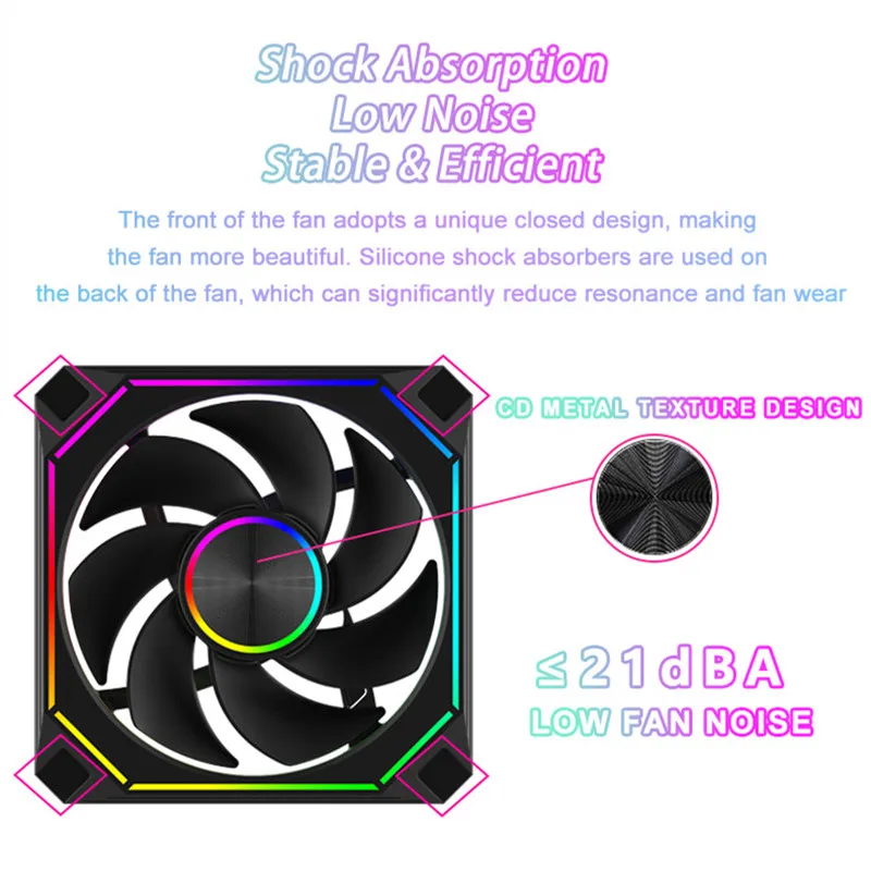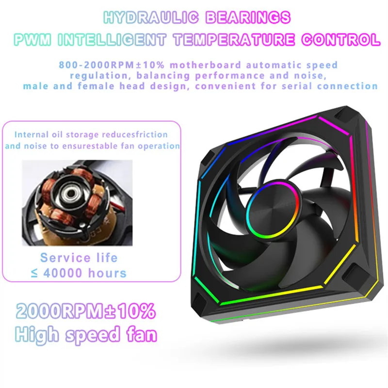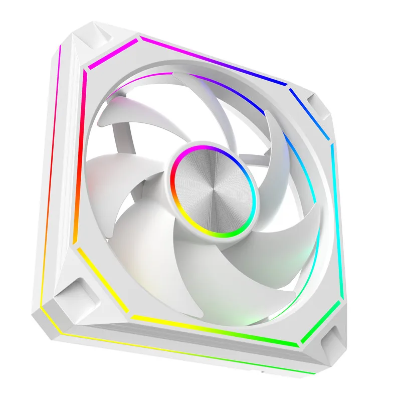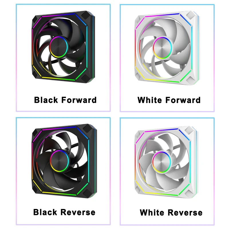 - The sleek design includes a 120mm square frame, with options in white or black, each supporting vibrant ARGB lighting for a customizable aesthetic.