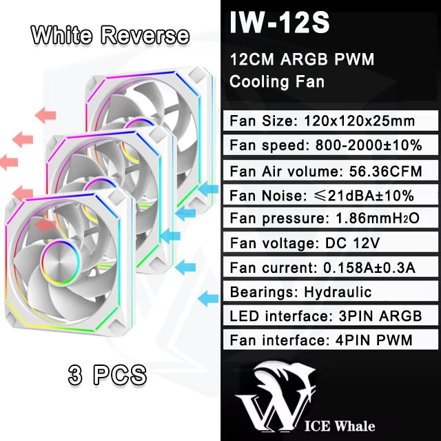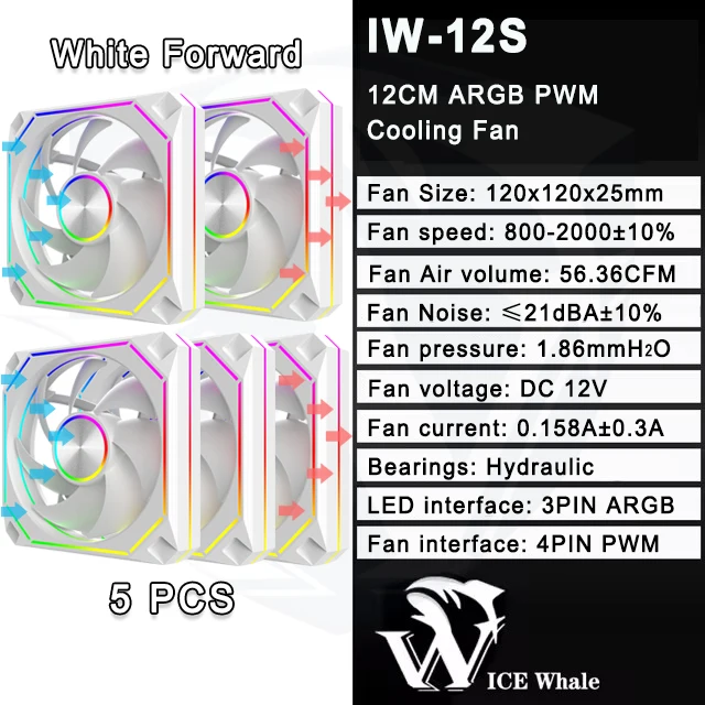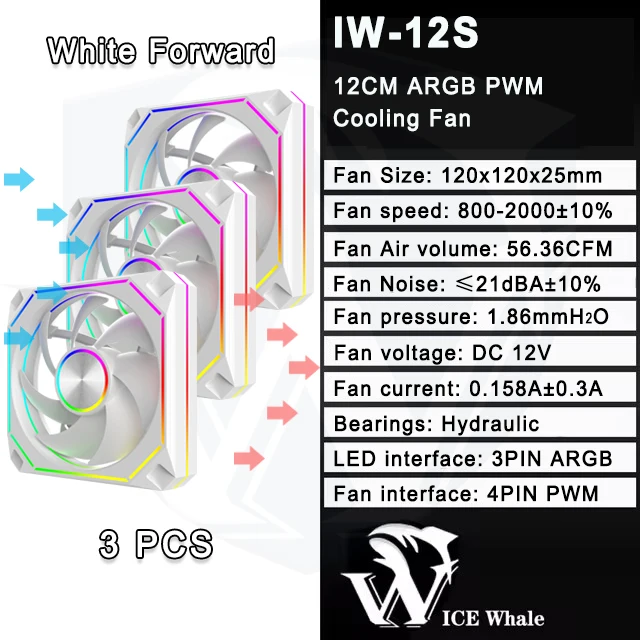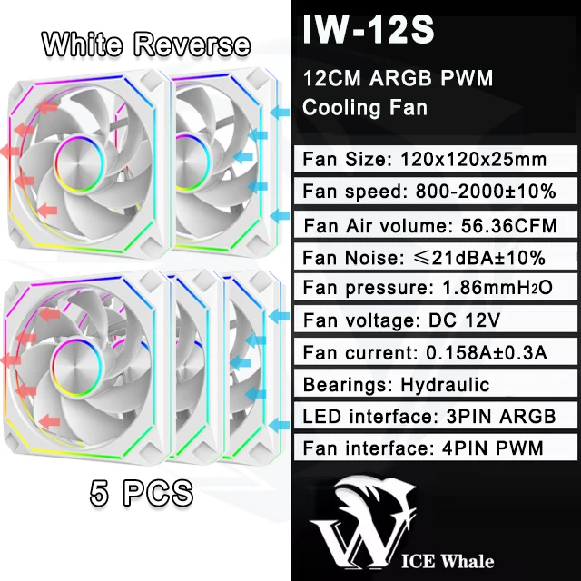- This this ICE Whale IW-12S fan provides high-performance cooling with a maximum airflow of 56.36 CFM and silent operation at 21dBA, ideal for demanding case and radiator applications.