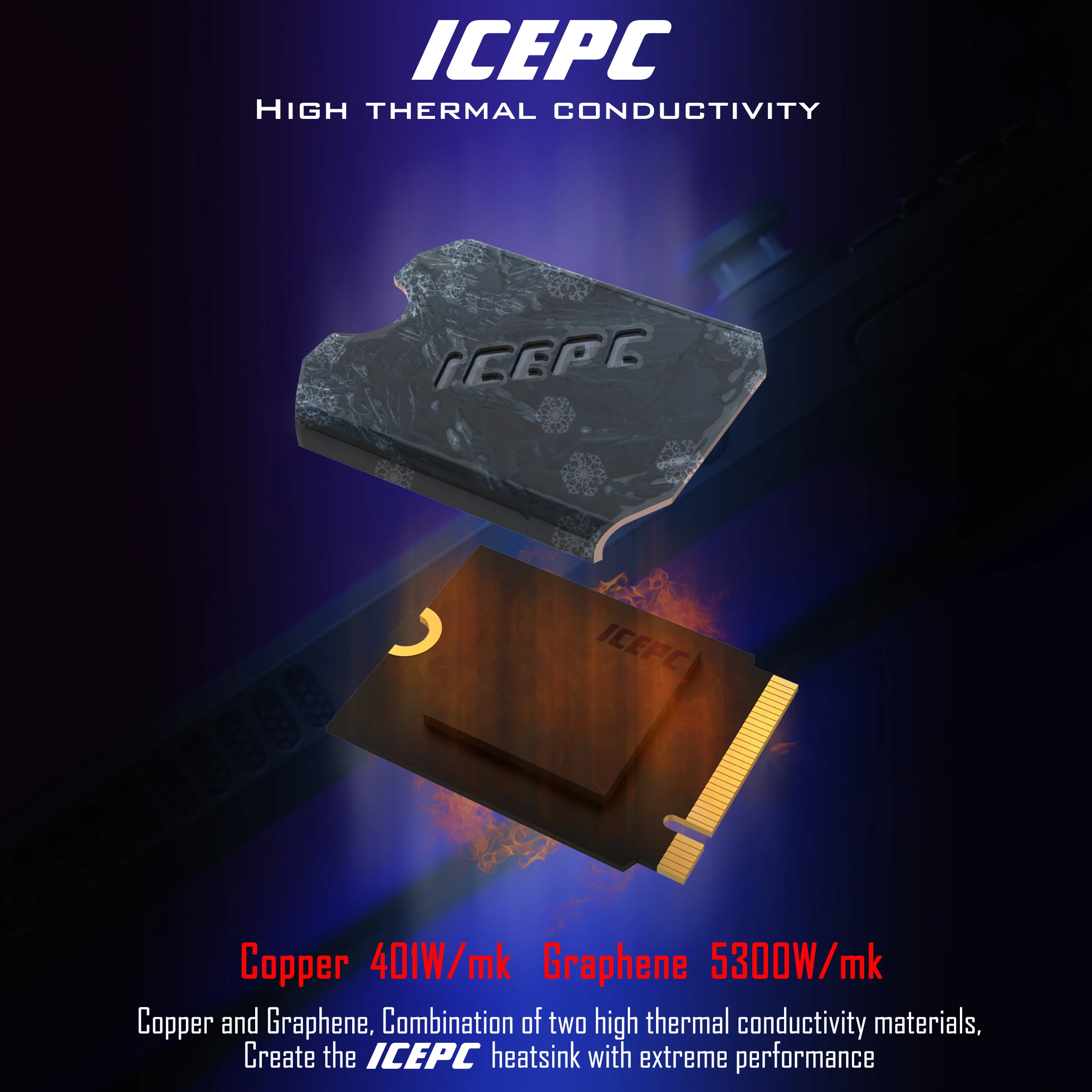 iCEPC M.2 NVME SSD 2242 Heatsink 5300 W/m-k