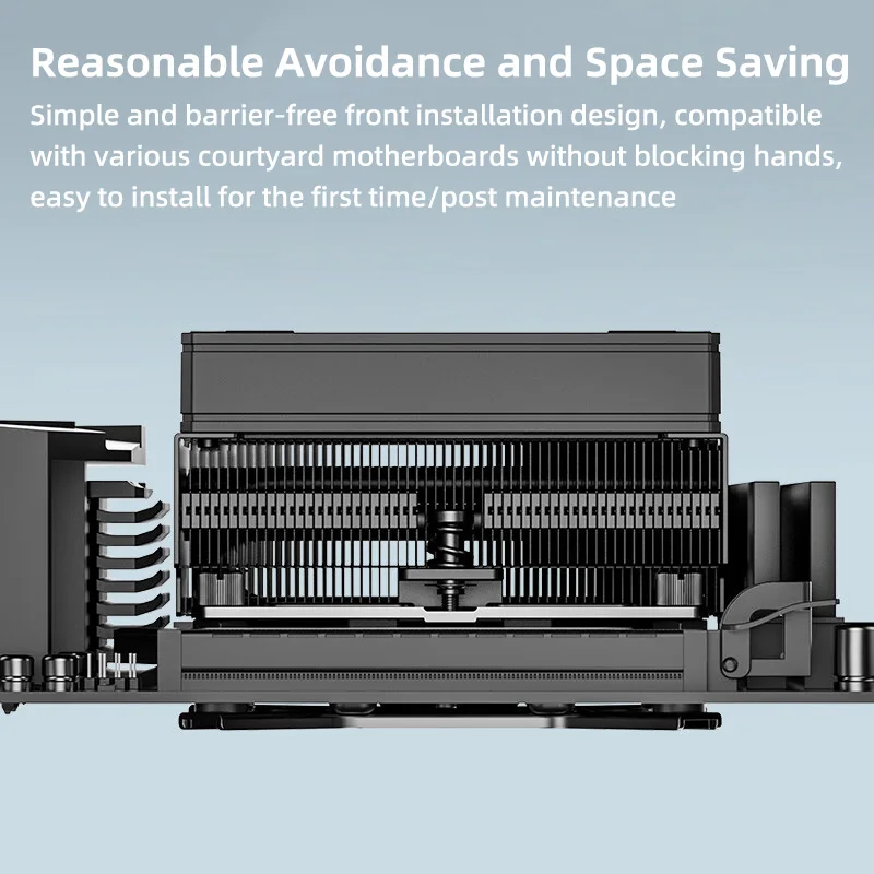 - This ultra-compact cooler features a 53mm low-profile design, ideal for small and slim PC cases without compromising cooling performance. Its sleek black exterior offers a clean, professional look.